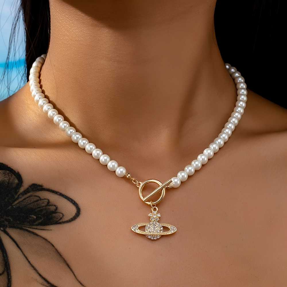 • Product Particulars: This necklace is crafted from high quality materials, featuring faux pearls and a beautifully detailed planet pendant. The pendant is adorned with sparkling cubic zirconia stones, adding a touch of brilliance to the piece. Designed for comfort and ease, the necklace includes a secure closure, ensuring a perfect fit for everyday wear.