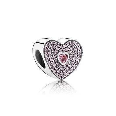 Women's Silver Plated Inlaid Cubic Zirconia Heart Charms