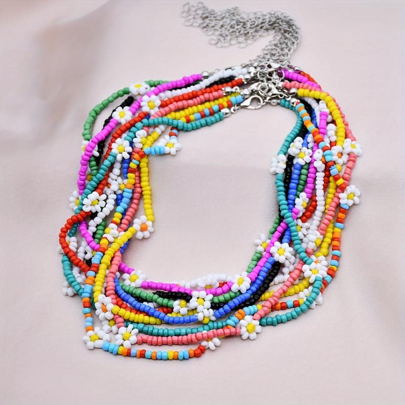 10pcs Boho Beaded Choker Necklace Colorful Floral Beads Lightweight