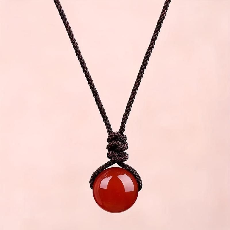 Elegant and versatile necklace featuring a red agate pendant on an adjustable braided cord. Perfect for everyday wear or as a thoughtful gift for mothers. Casual bohemian style jewelry.
