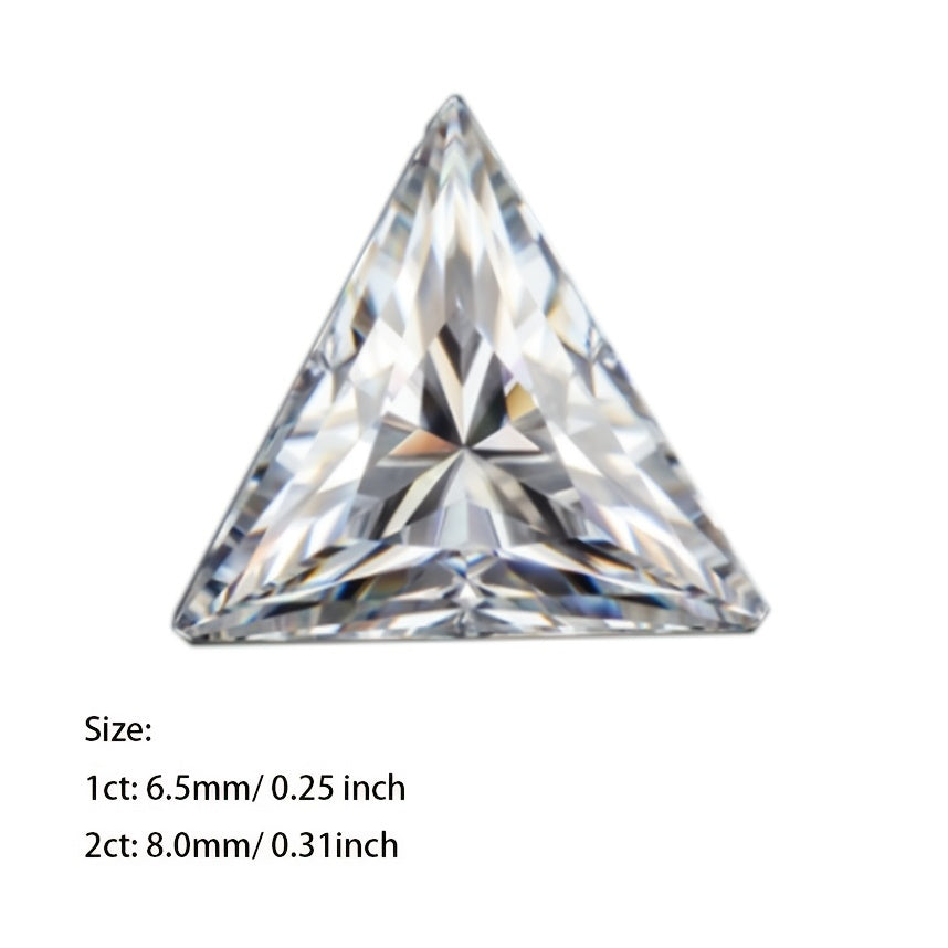 Get sparkling D VVS1 Triangle Moissanite with loose stones for creating your own stunning jewelry pieces. Choose between 1ct or 2ct sizes.