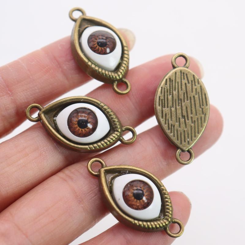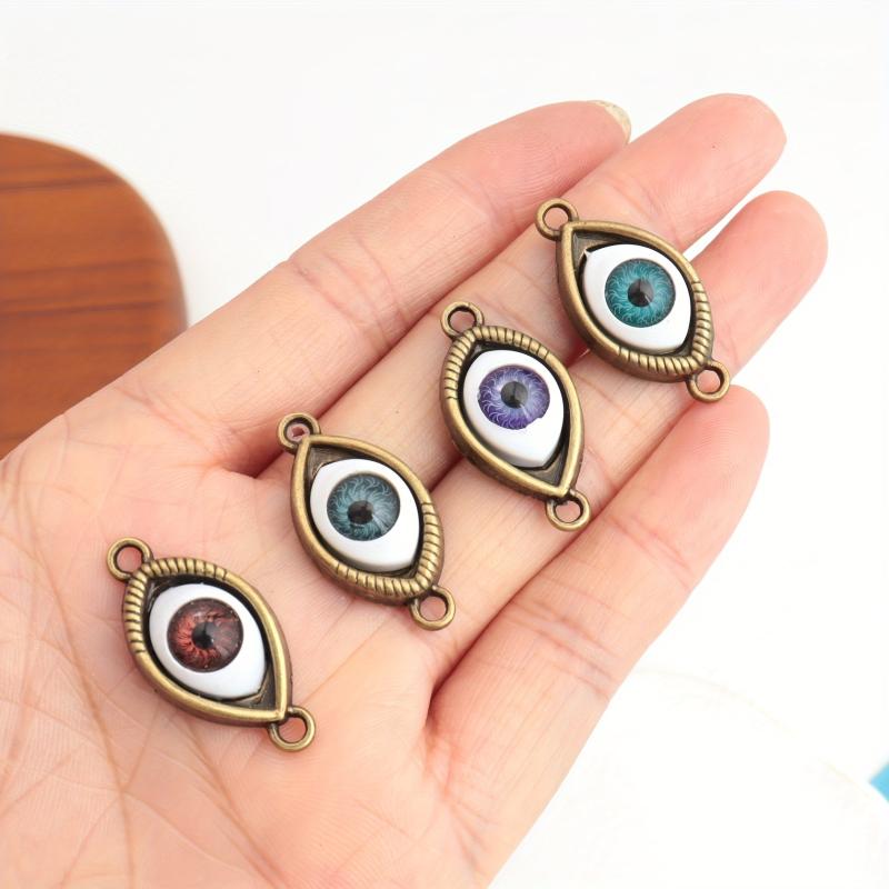 These Devil's Eye Alloy Pendants feature intricate craftsmanship with a durable red and purple resin eye set in a golden metal frame. Perfect for jewelry making and crafts.