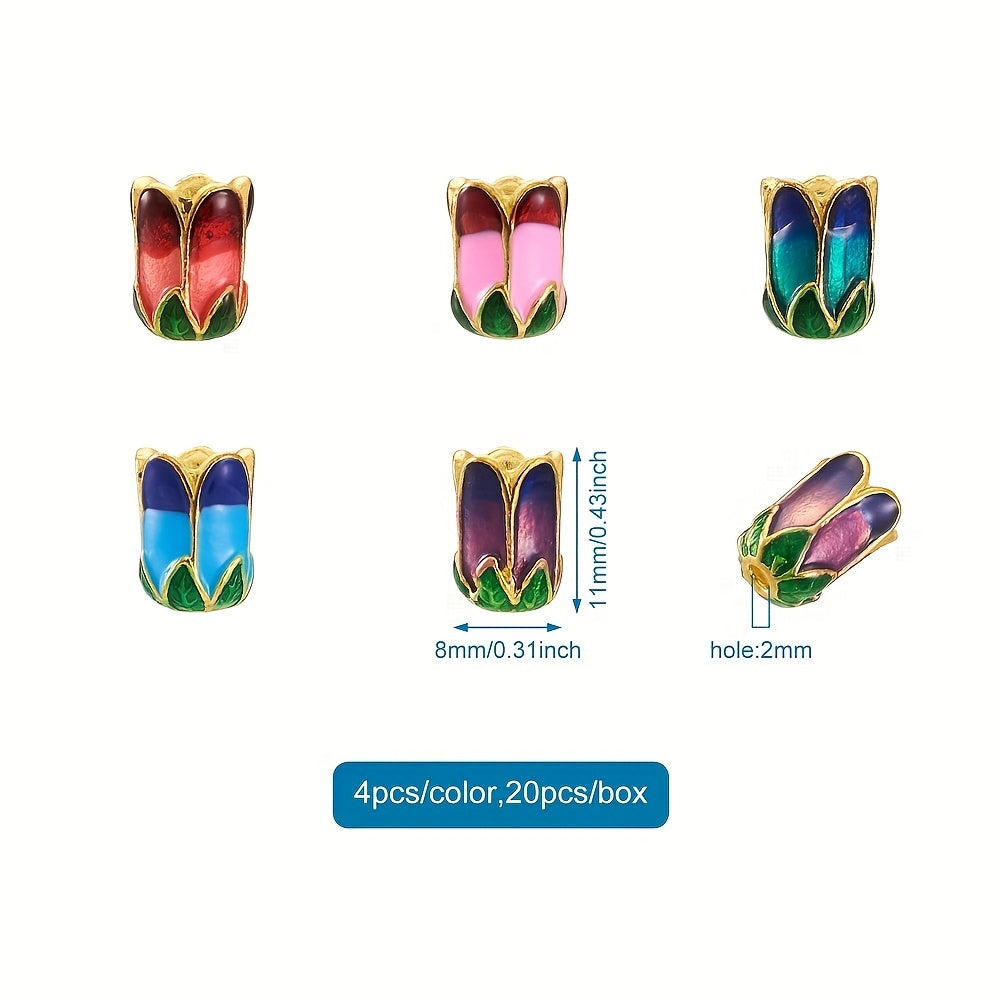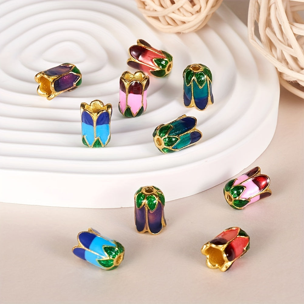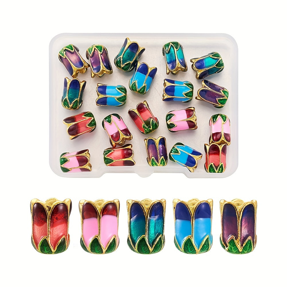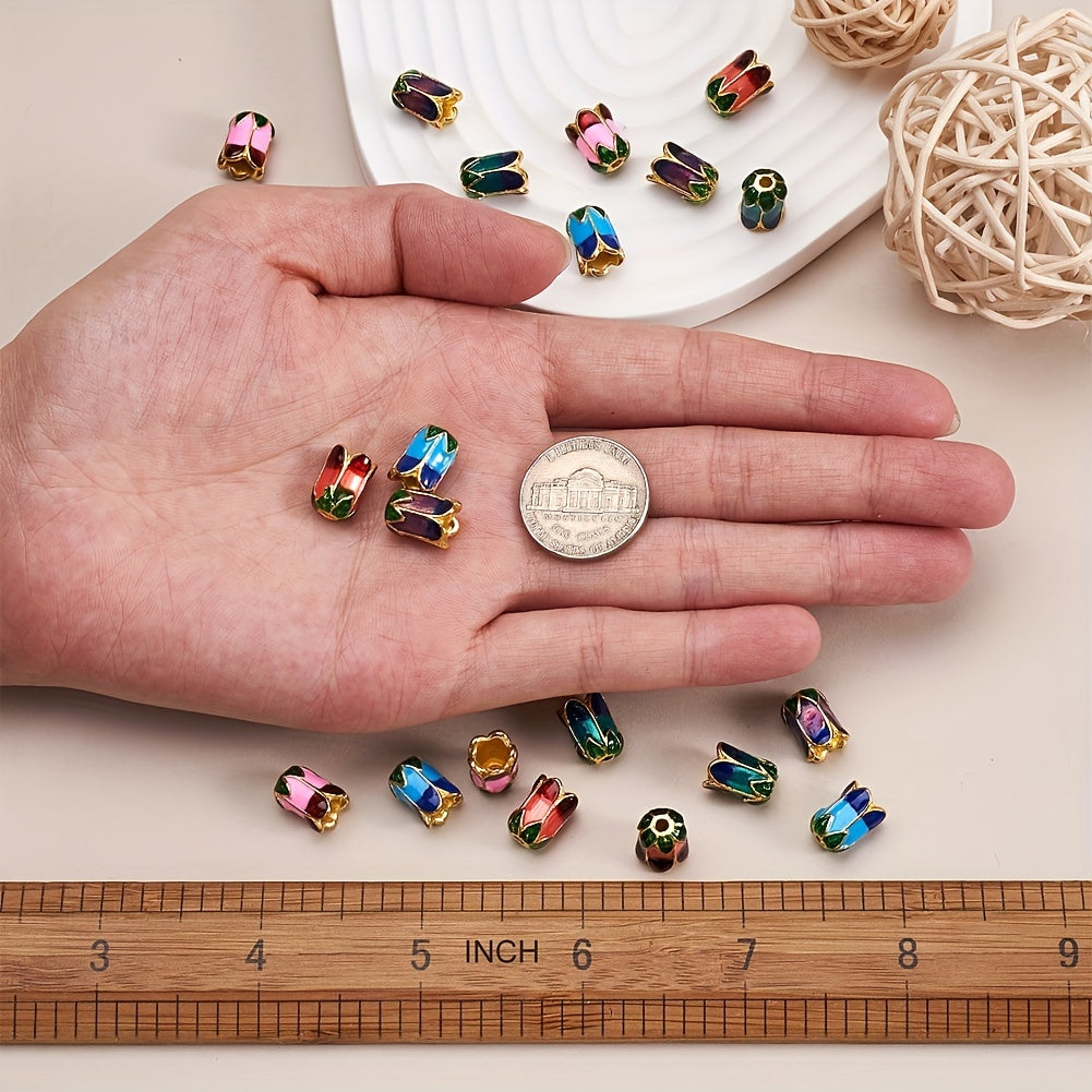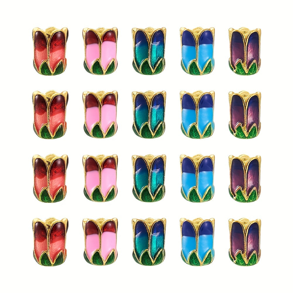 20pcs Tulip Alloy Enamel Bead Cap for DIY Jewelry Making