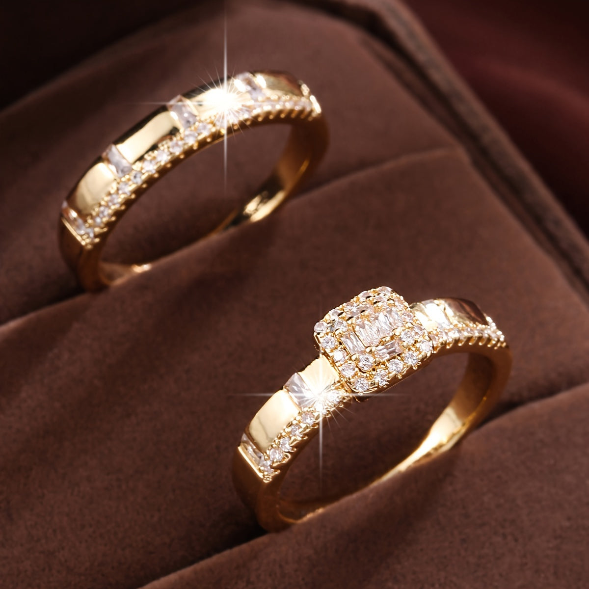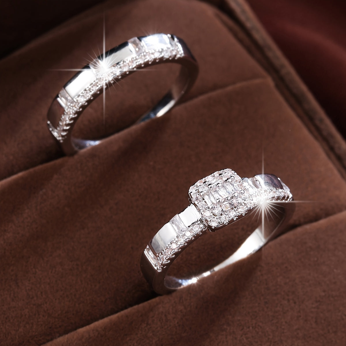 Elevate your style with this 2-piece stackable ring set featuring cubic zirconia stones that shine like diamonds. Perfect for adding glamour to both daily wear and formal occasions.