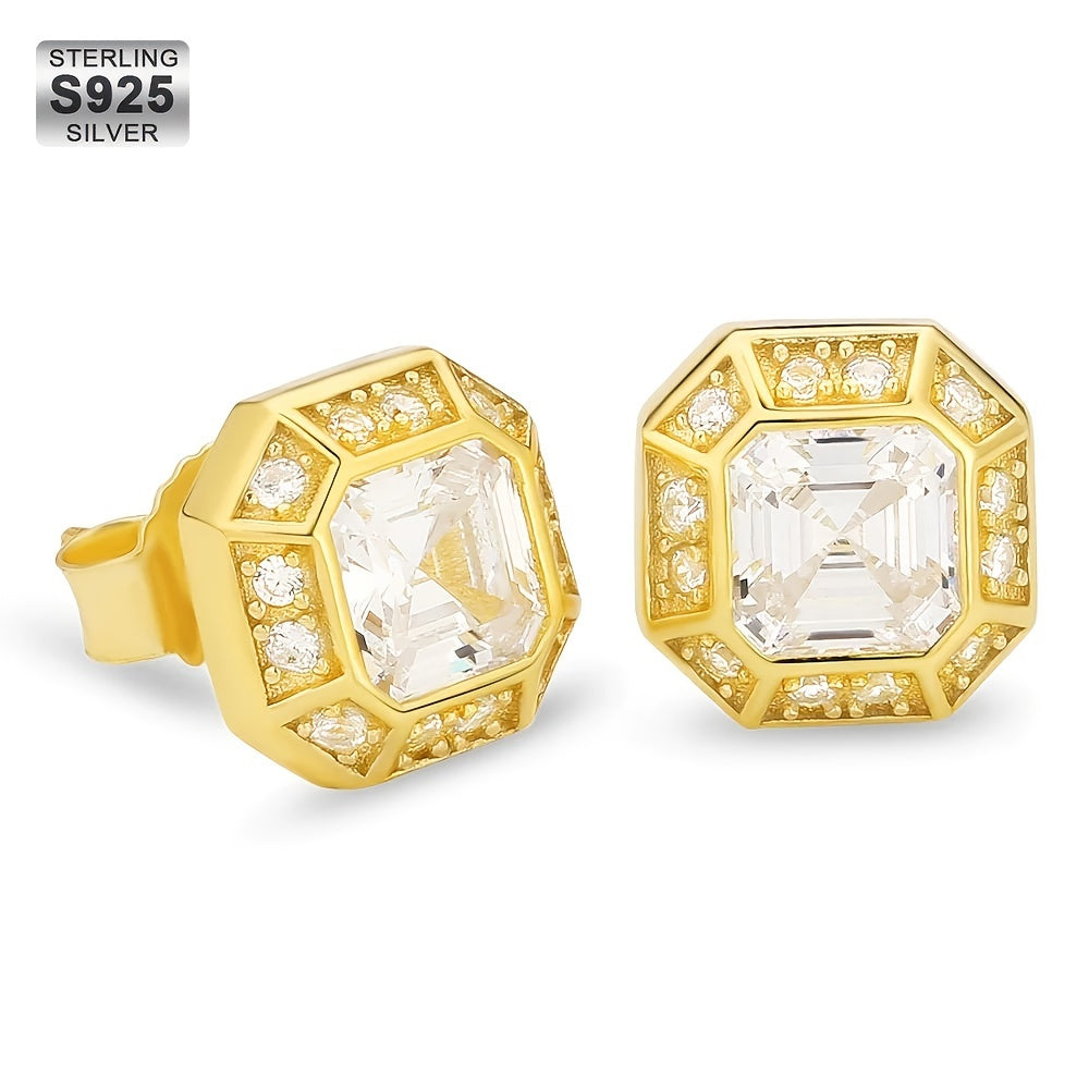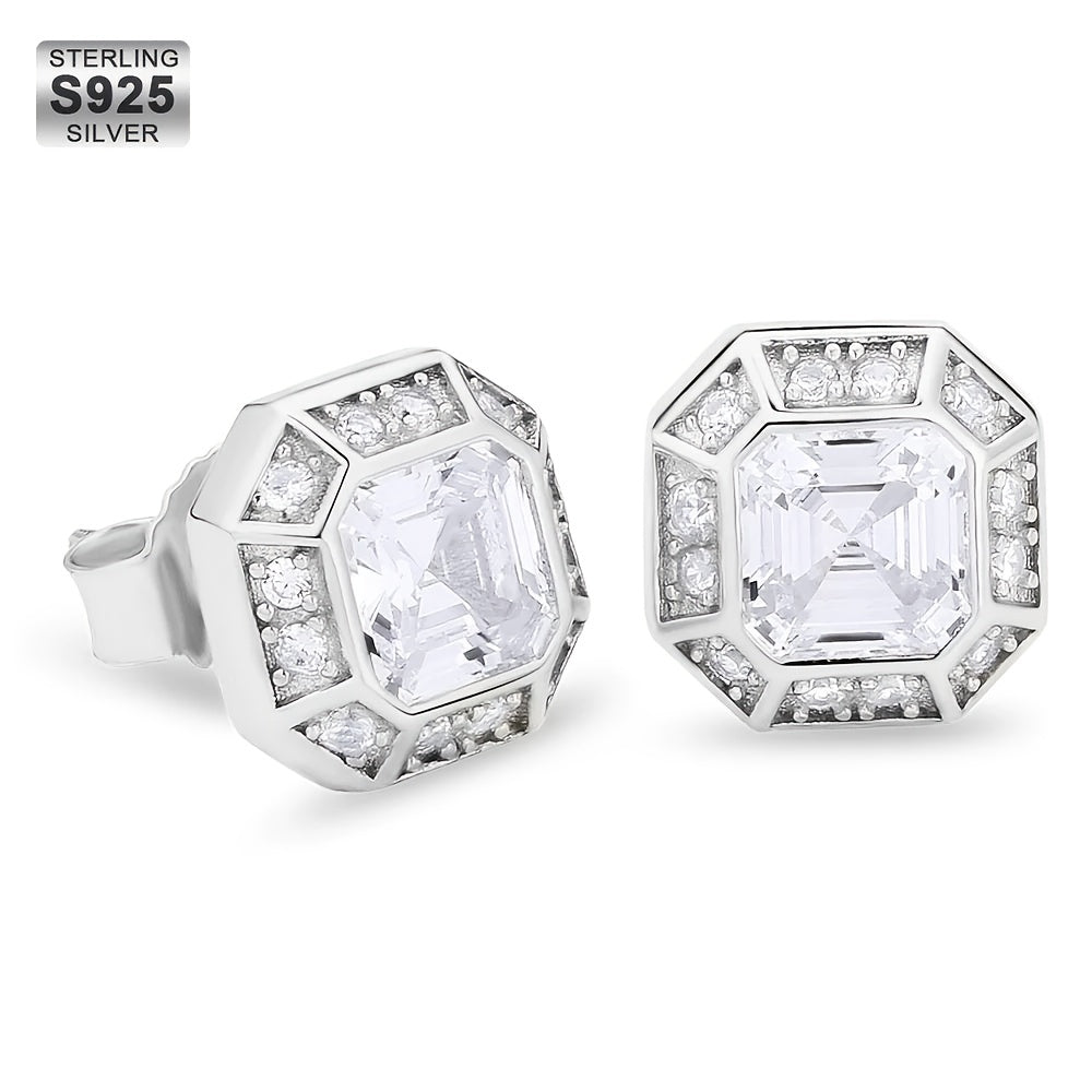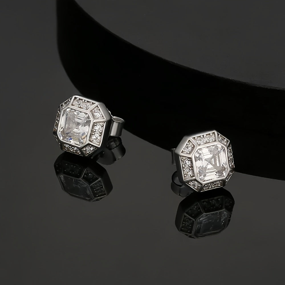 Add a touch of elegance to your look with these stunning octagonal emerald cut zirconium earrings. Made from platinum and S925 silver, these earrings are perfect for any occasion.
