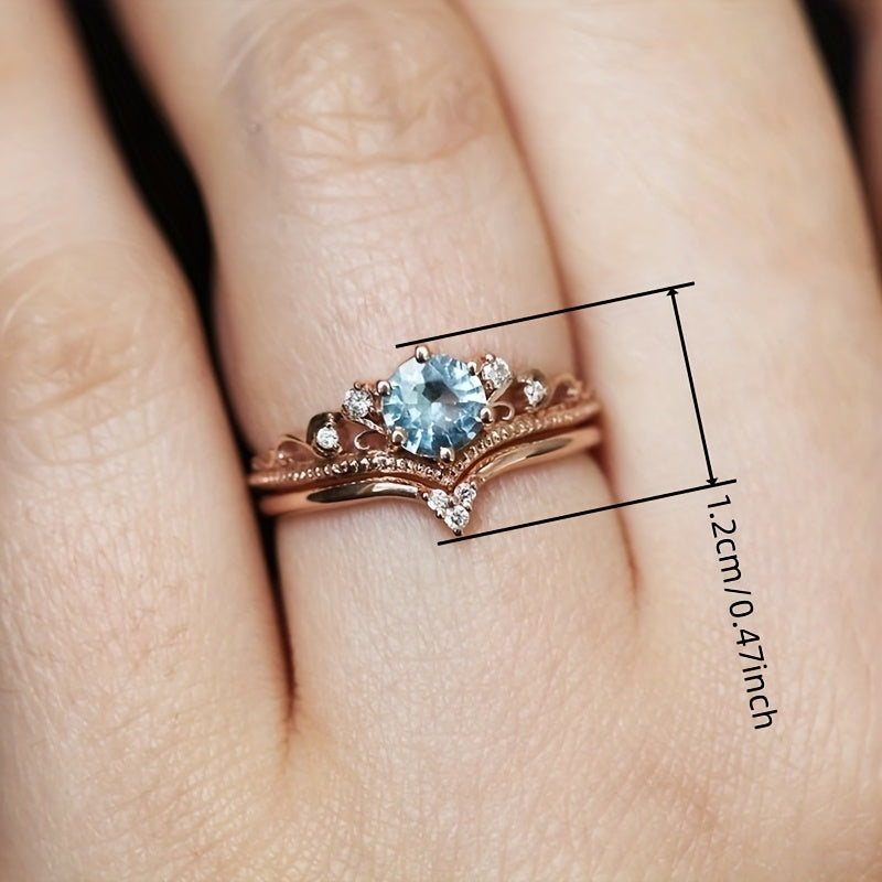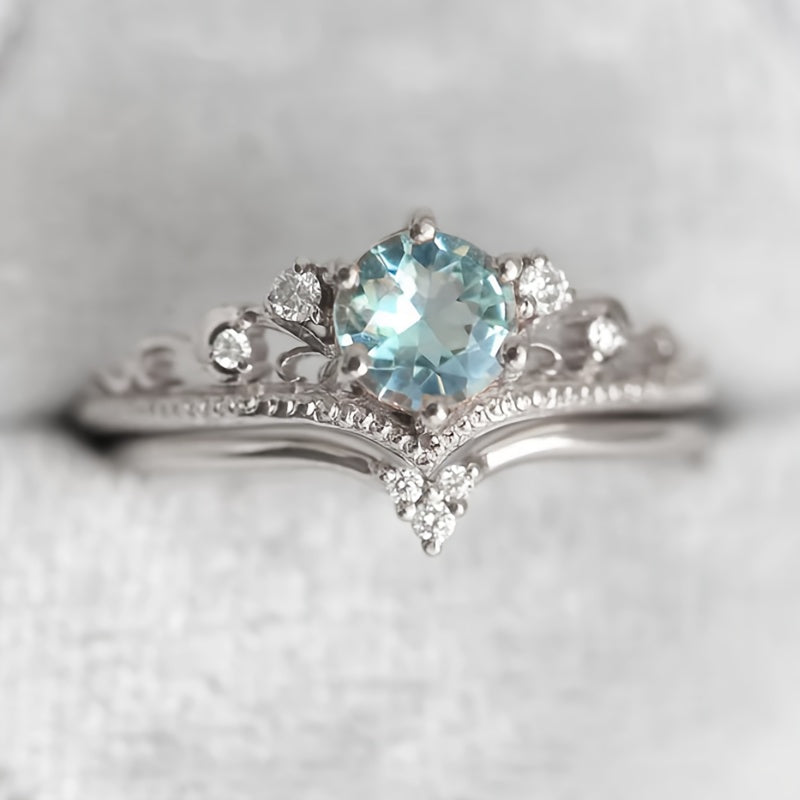 This set includes two engagement rings featuring sea Synthetic Zirconia stones. Perfect for weddings and anniversaries, these rings are a symbol of love and commitment.