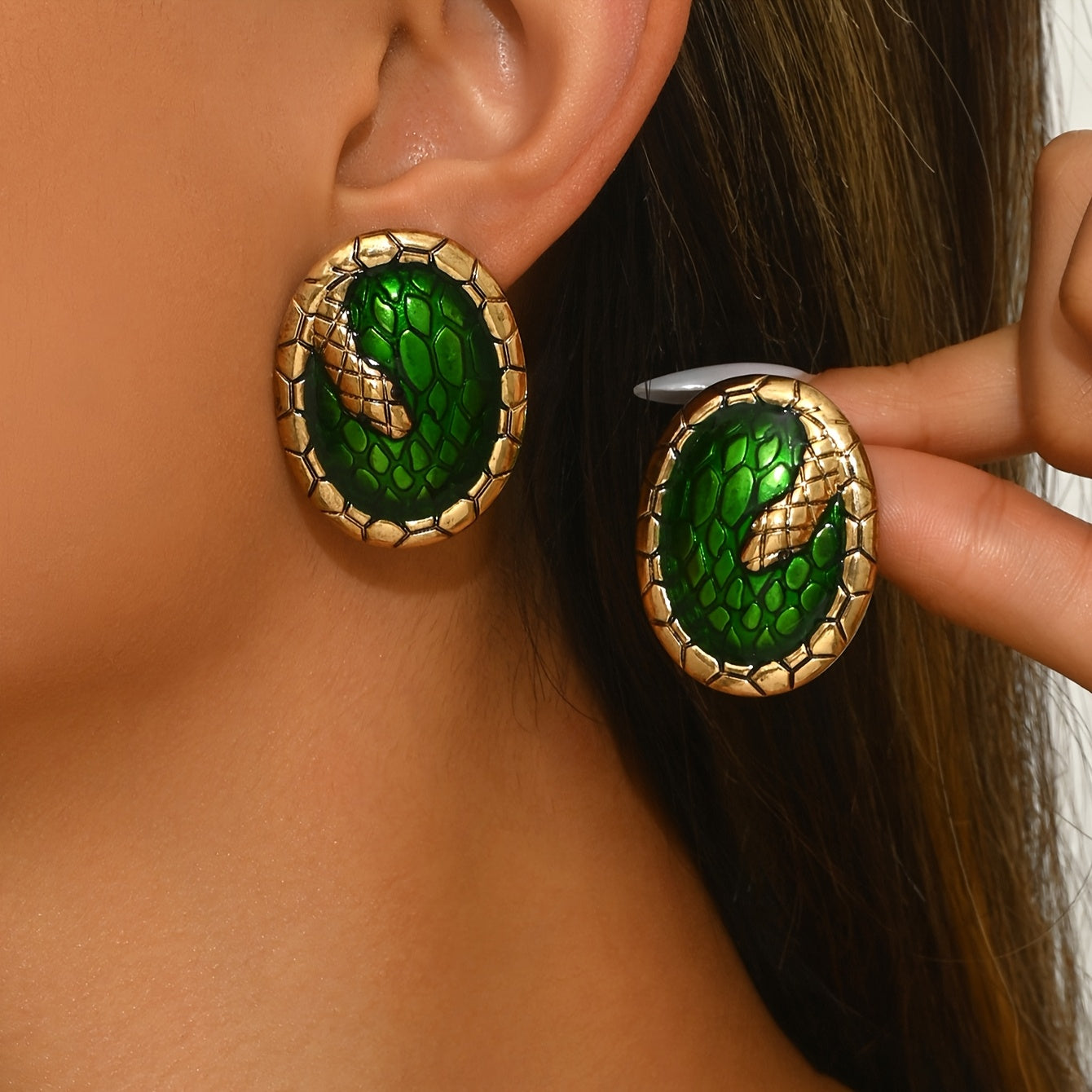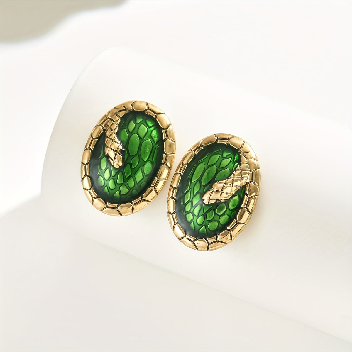 European and American style earrings with snake pattern design. Golden plated for a luxurious look. Ideal for daily wear and all seasons.