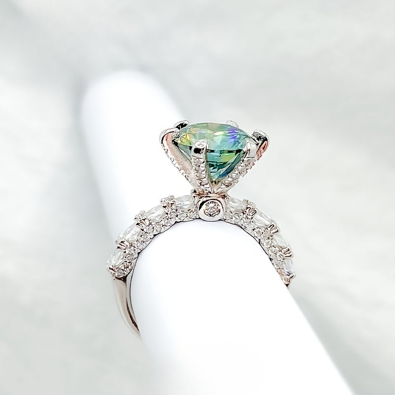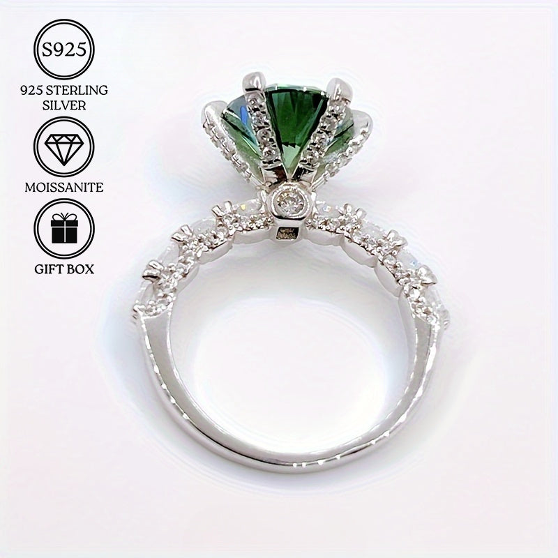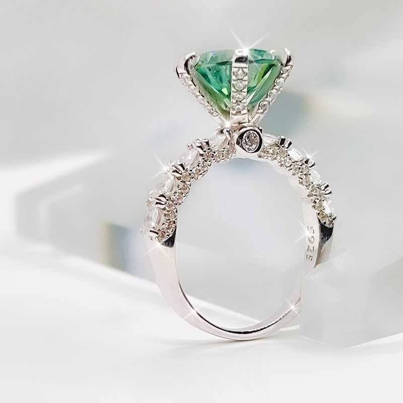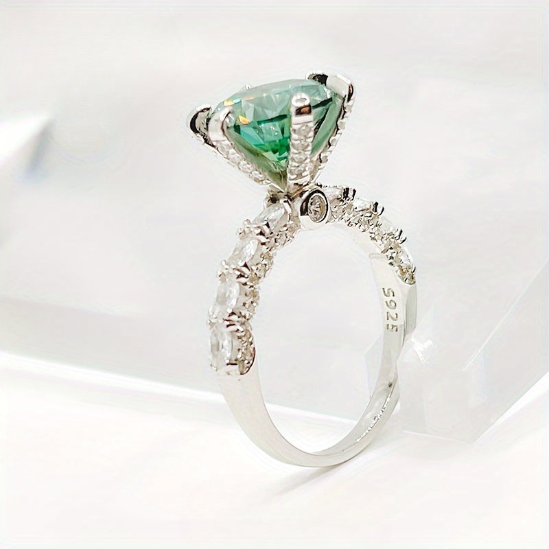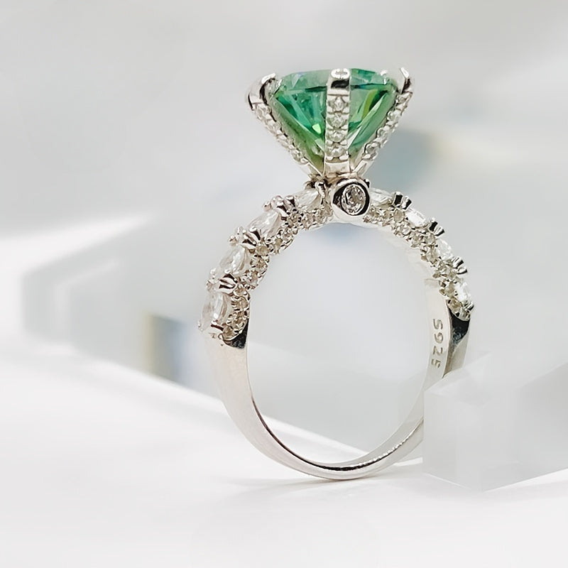 3ct Green Moissanite Ring S925 Sterling Silver Stylish Gift