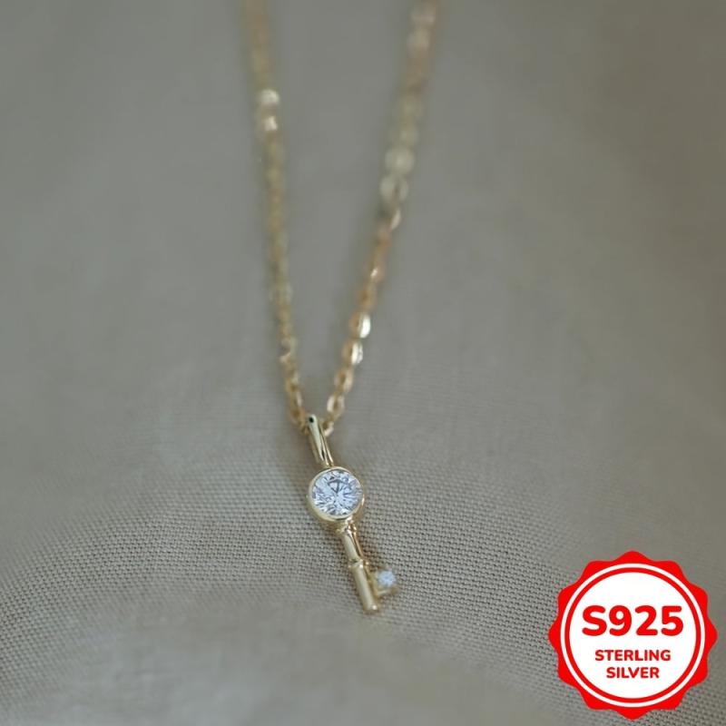 3g One 925 Pure Silvery Mini Key Necklace for Women Everyday and Collar Chain