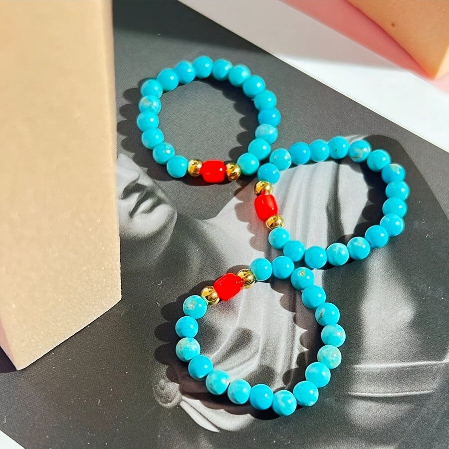 This set of 3 rings is made of stainless steel with natural stone, freshwater pearl, and shell embellishments. It is versatile and suitable for daily wear, travel, and special occasions.