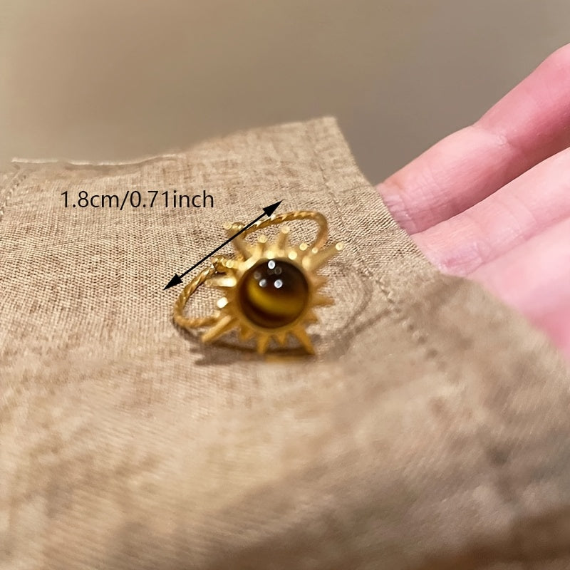This set includes 3 vintage alloy rings featuring sunflower and tiger's eye designs. Perfect for adding a touch of retro charm.
