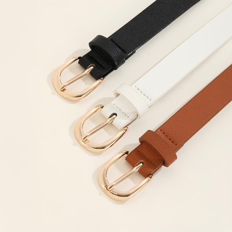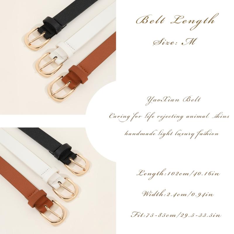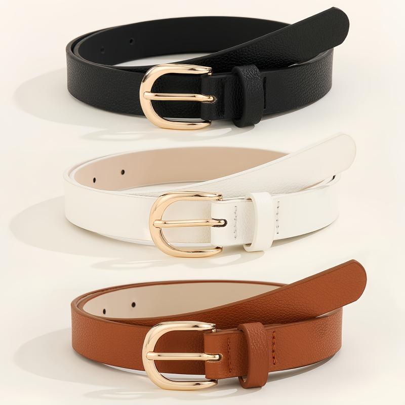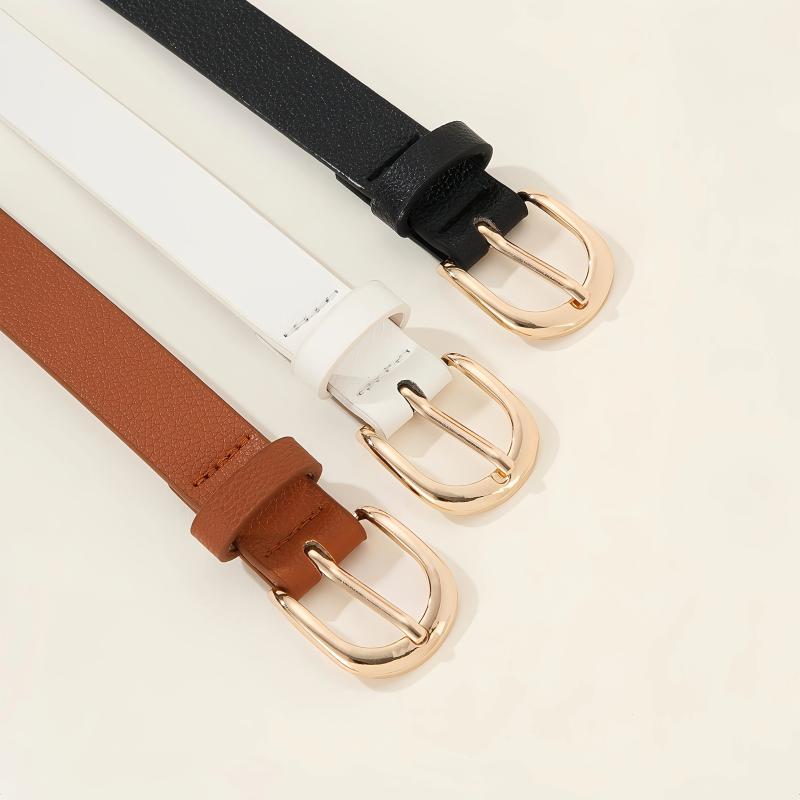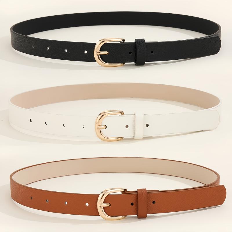 Elevate your outfit with these fashionable belts featuring golden tone metal buckles and a brown textured pattern. This set includes 3 belts, perfect for various occasions.