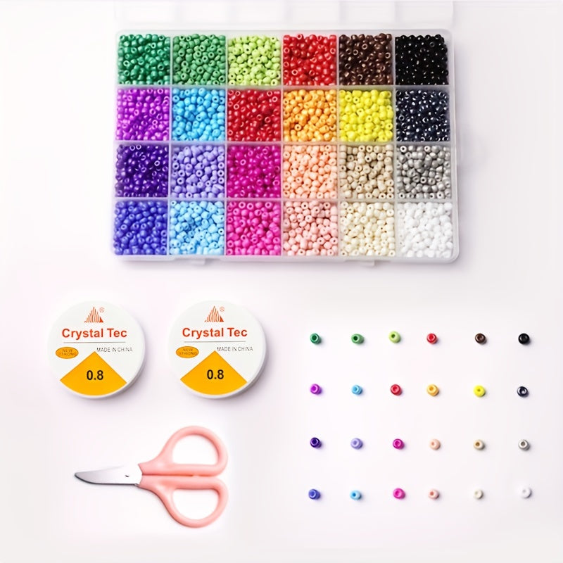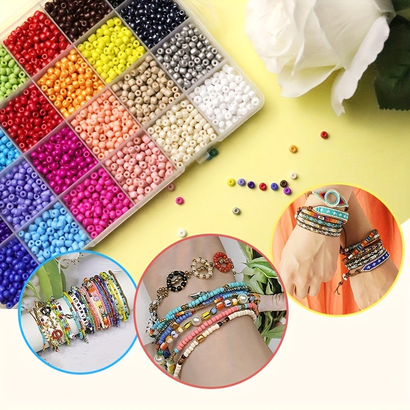This set includes 4000 pieces of 4mm candy glass rice beads in 24 different colors. Perfect for creating colorful and unique jewelry pieces.