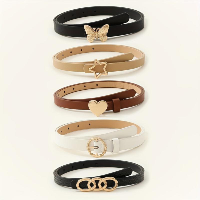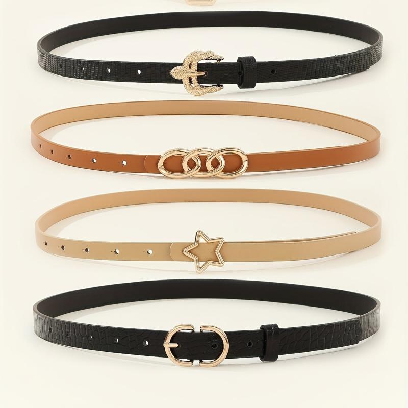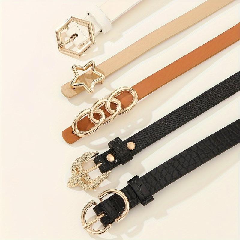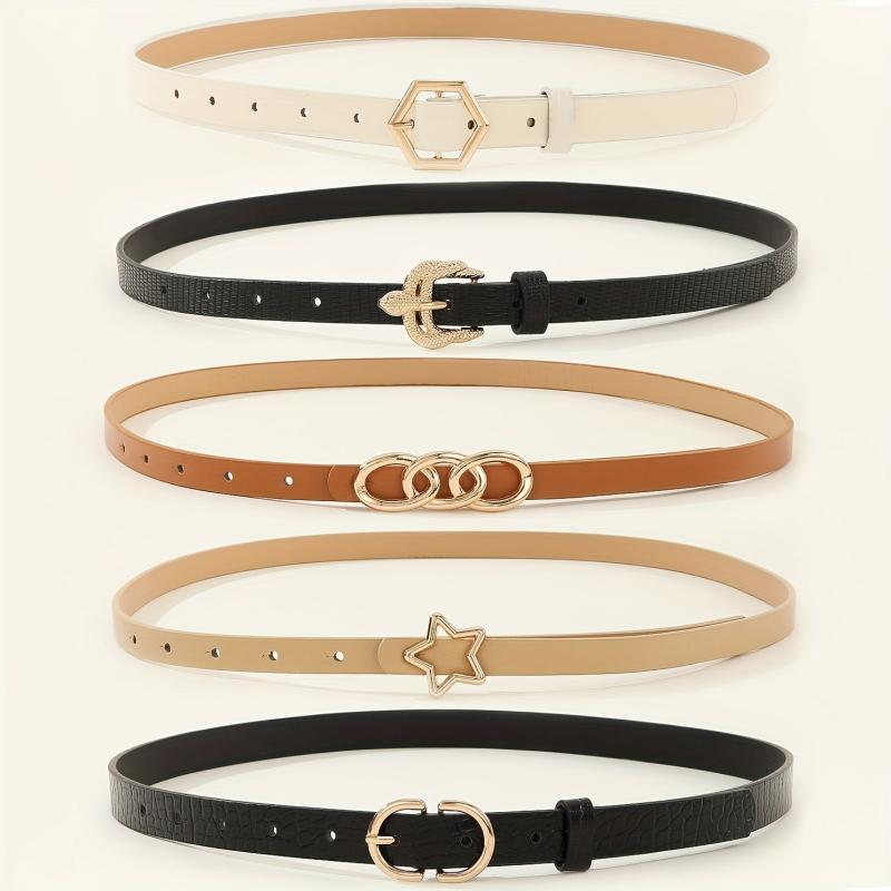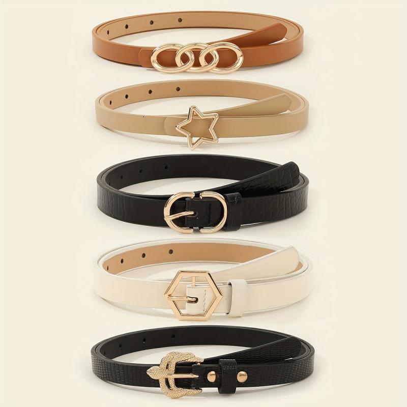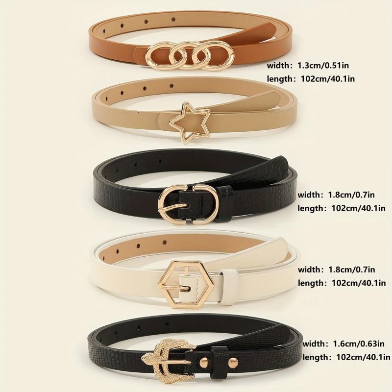 Elevate your look with this 5 pack women's belts set featuring star and hexagon buckles. Made from non-textile material, these belts are perfect for night out and weekend casual wear in average size.