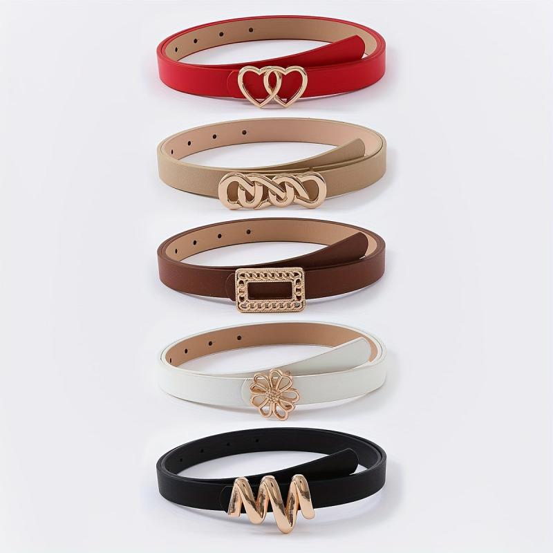 5 Pack Women'S Belts Set Star & Hexagon Buckle Hollow Non Textile Material
