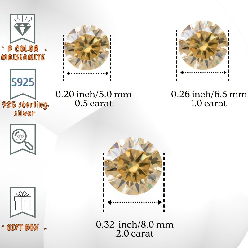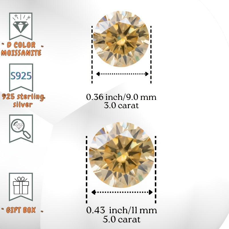 Stunning 5mm loose Moissanite with a champagne hue, excellent cut, and D VVS1 clarity. Perfect for pendant, stud earrings, or ring.