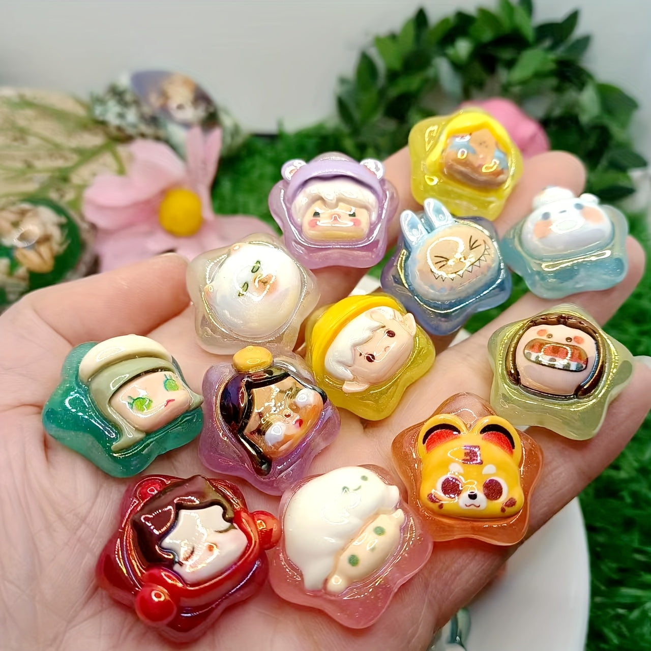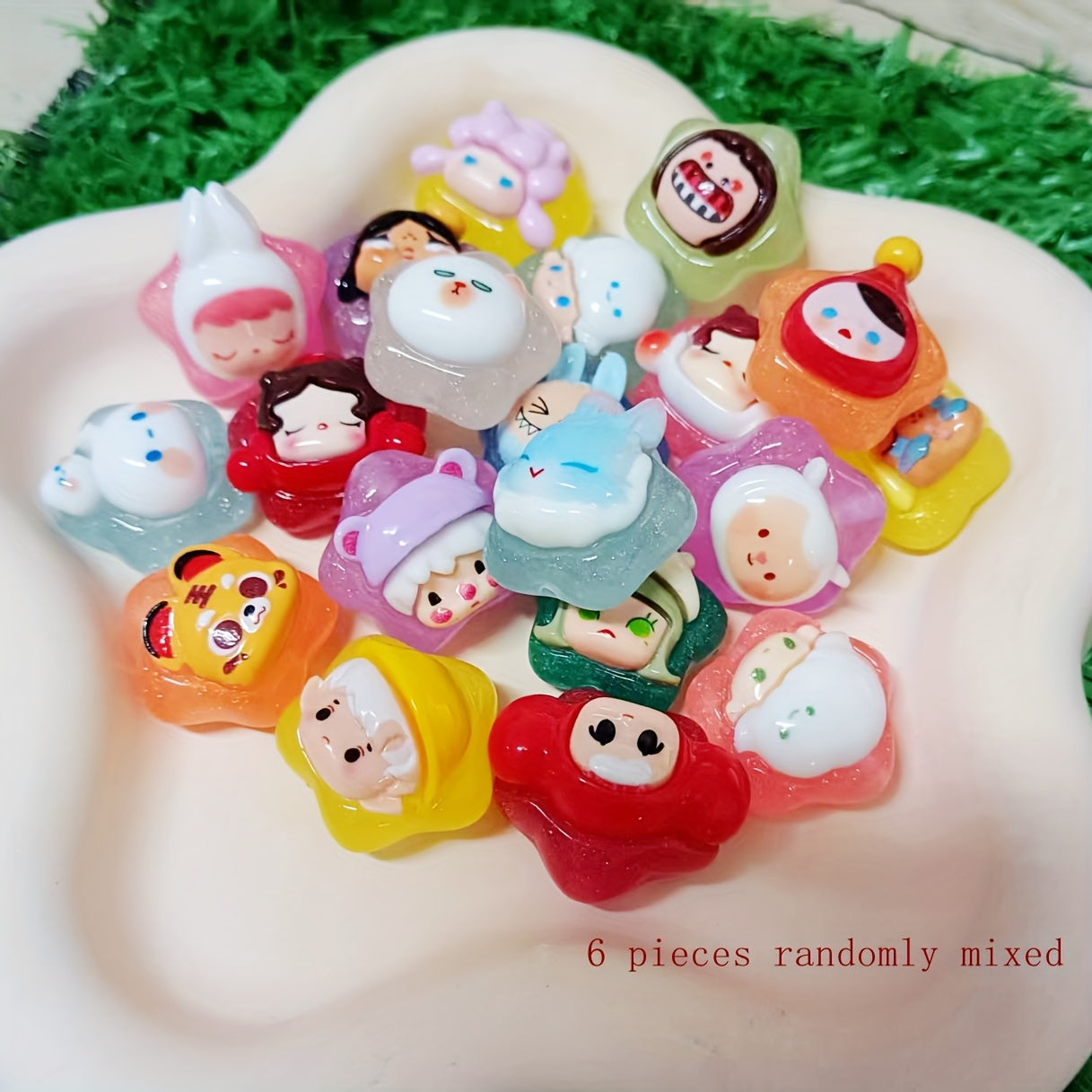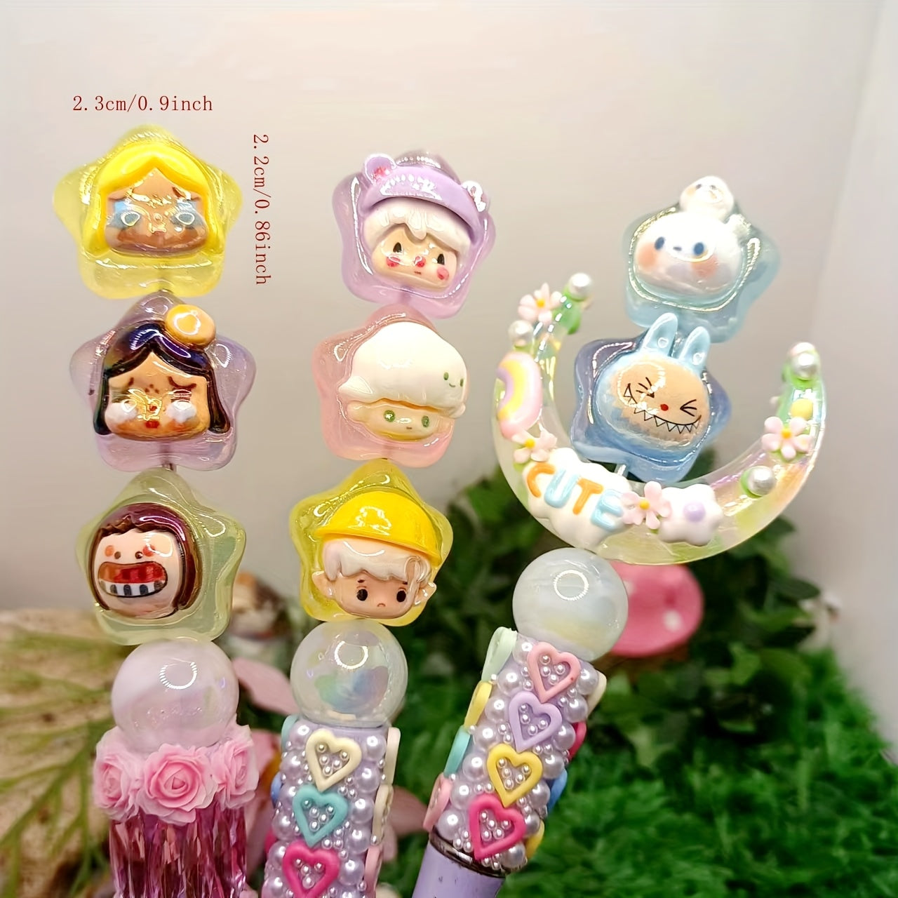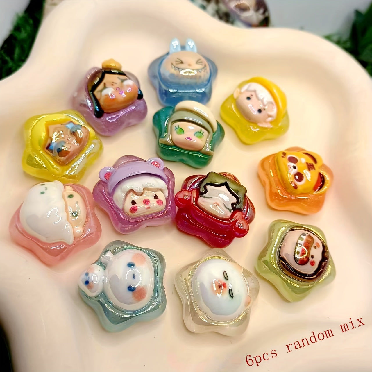 6pcs Glow in the Dark Resin Star Beads with Vertical Holes Multicolor