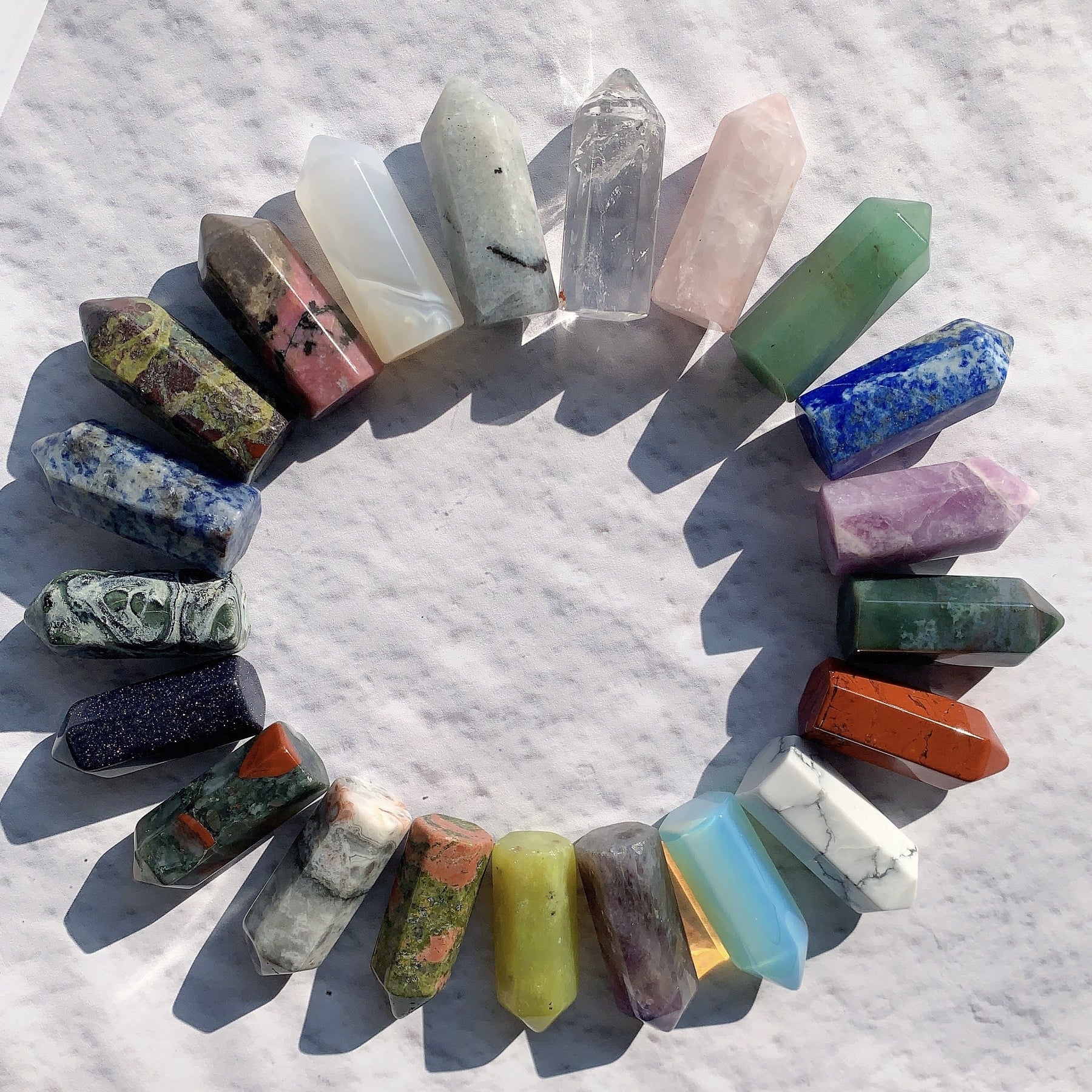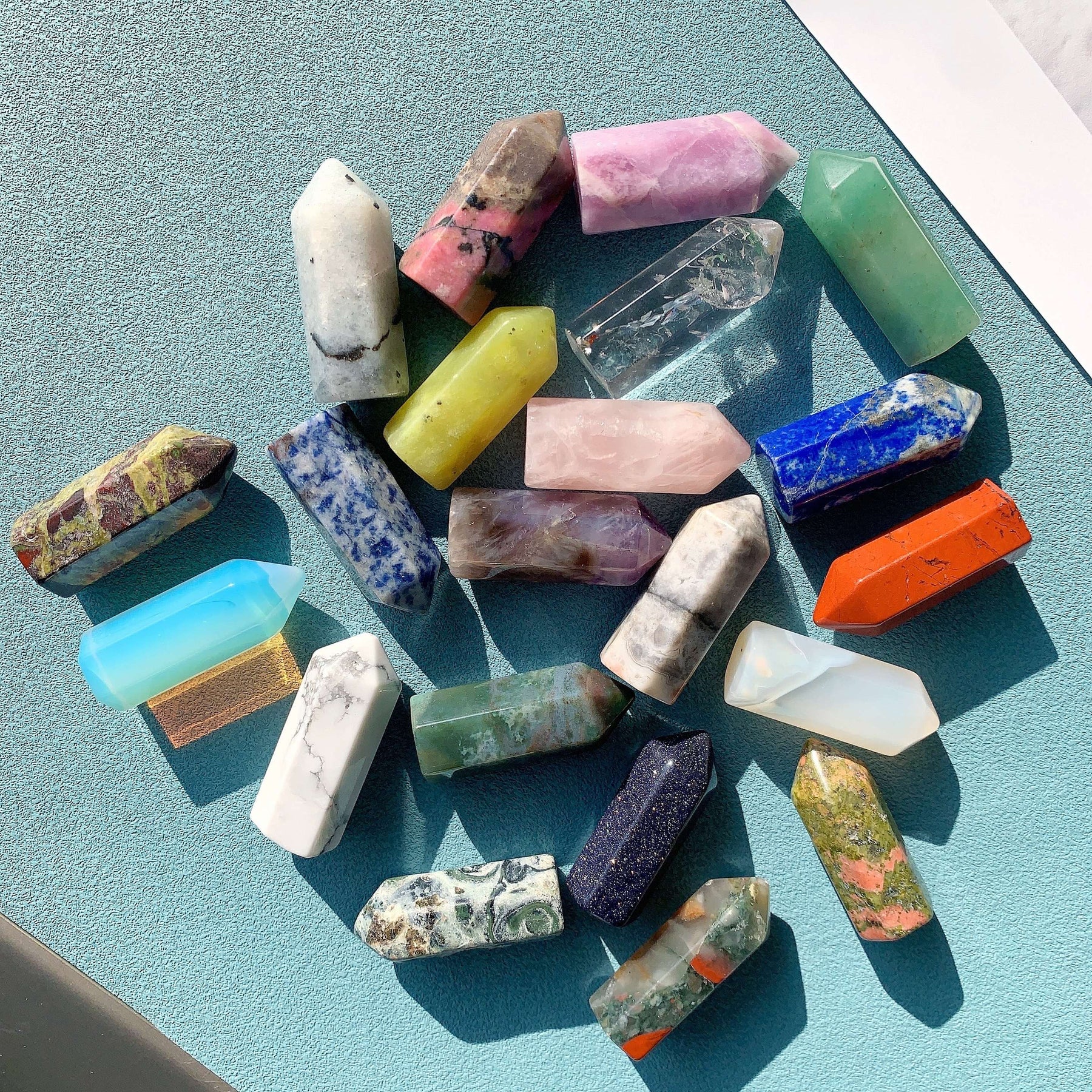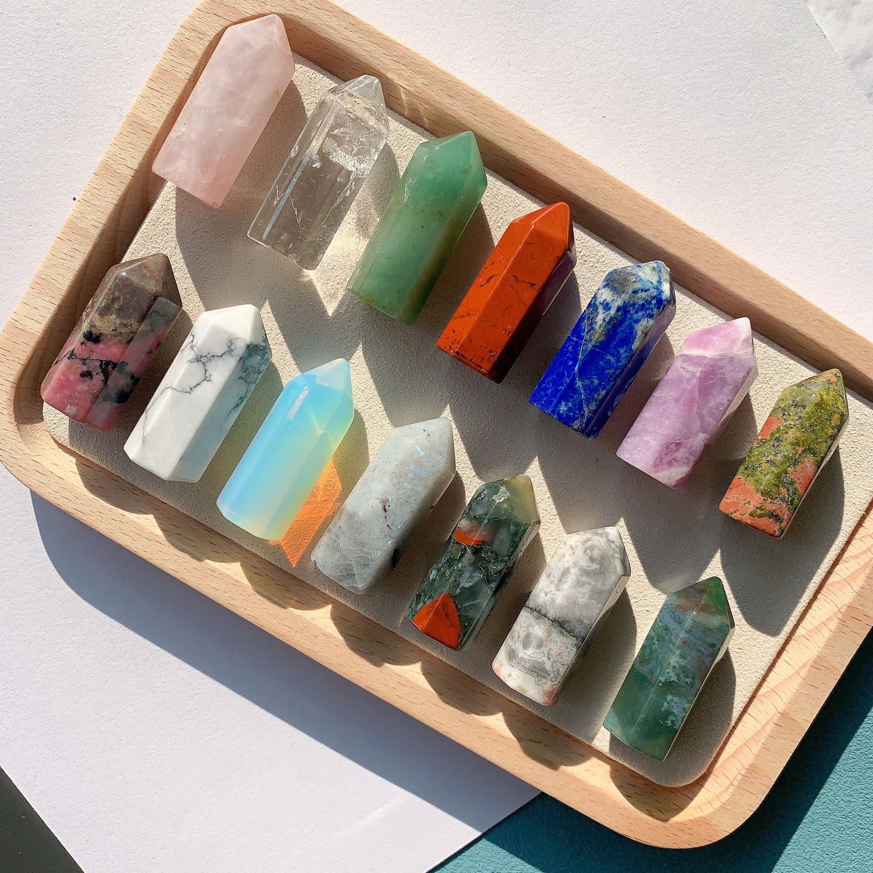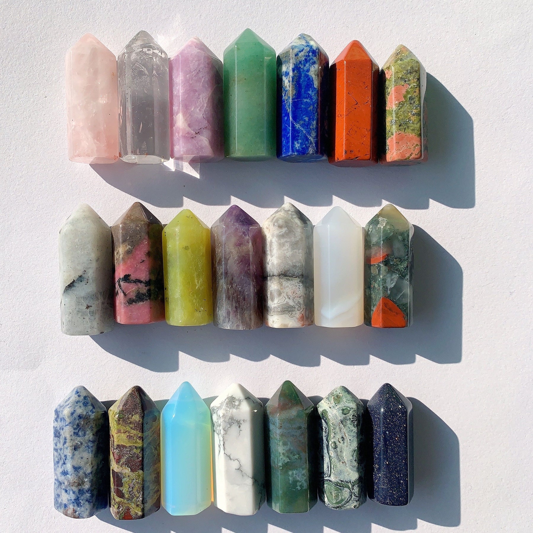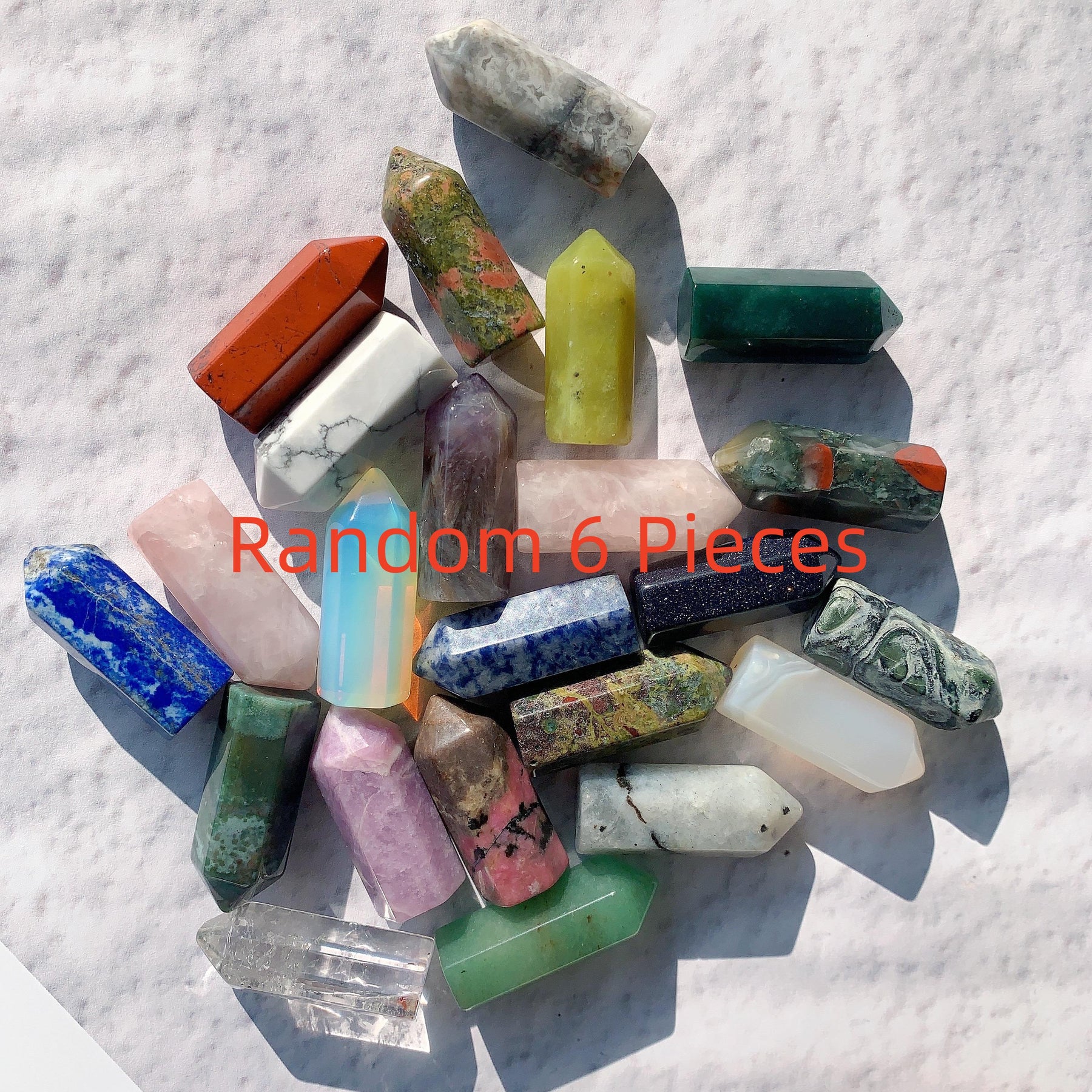 This set includes 6 natural crystal mini towers and tiny natural crystal points. Perfect for crystal healing, meditation, and decoration.