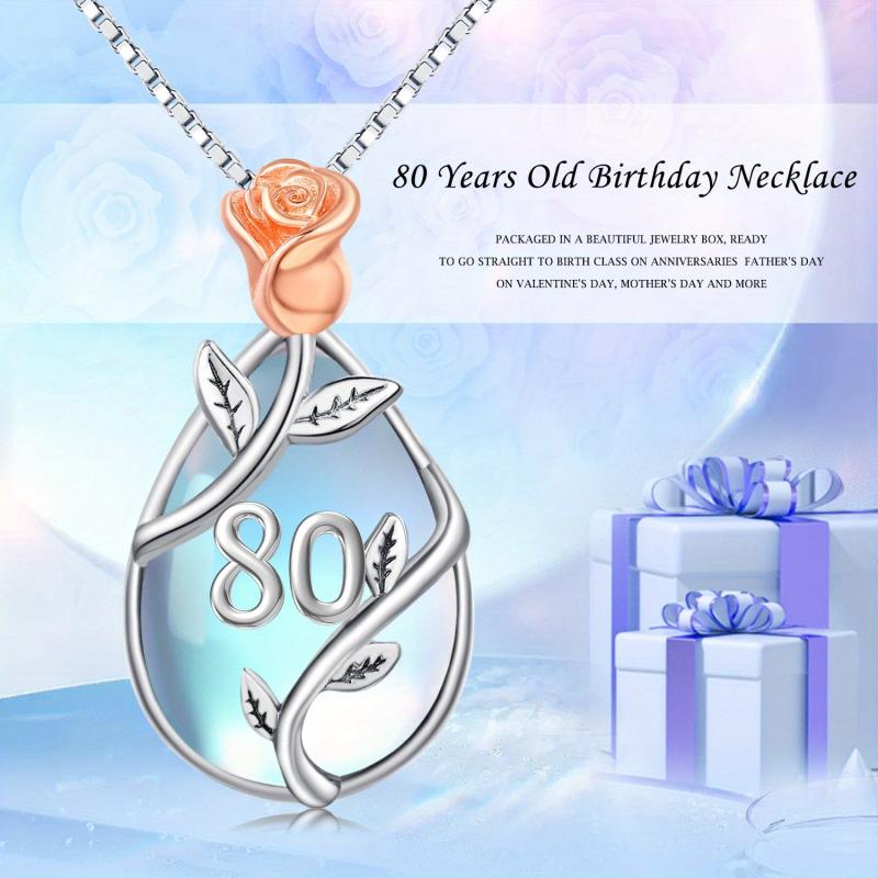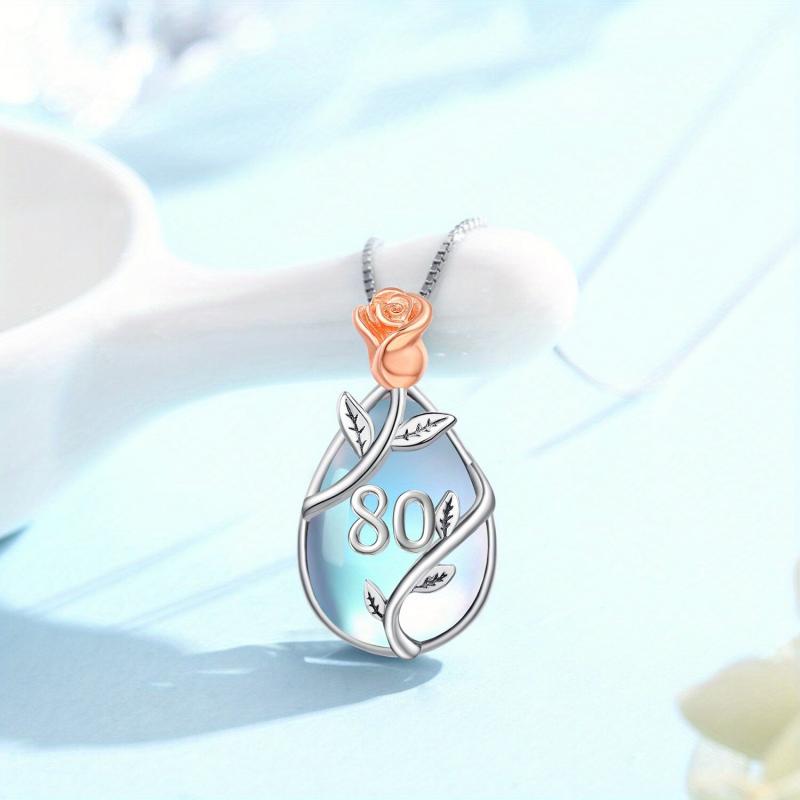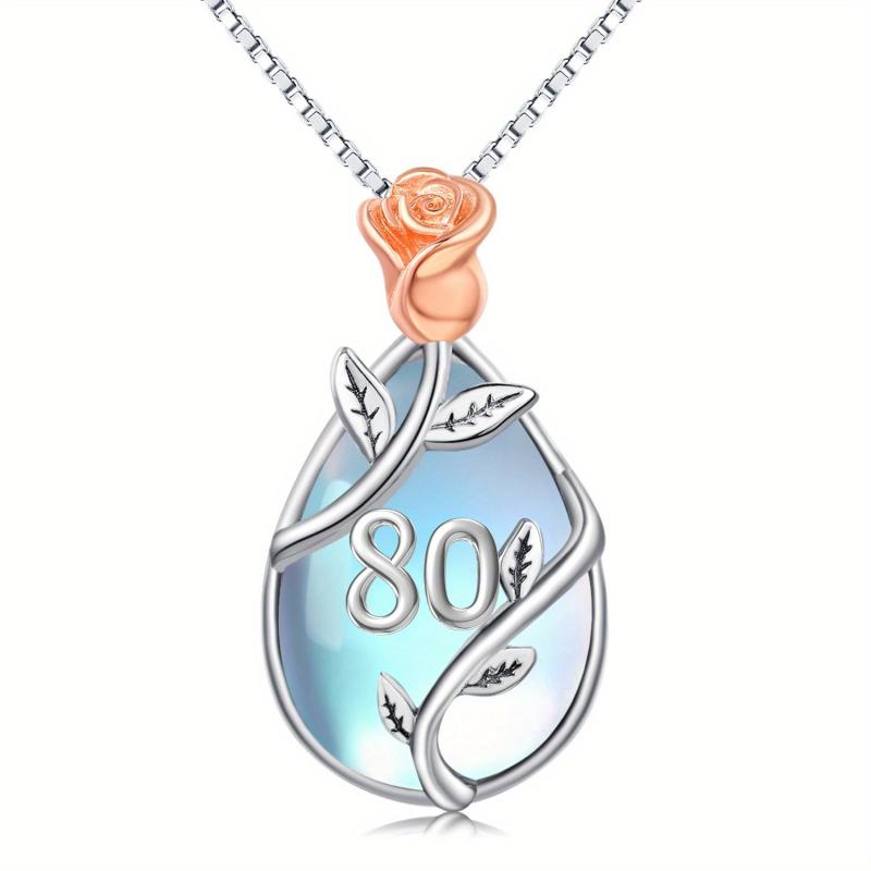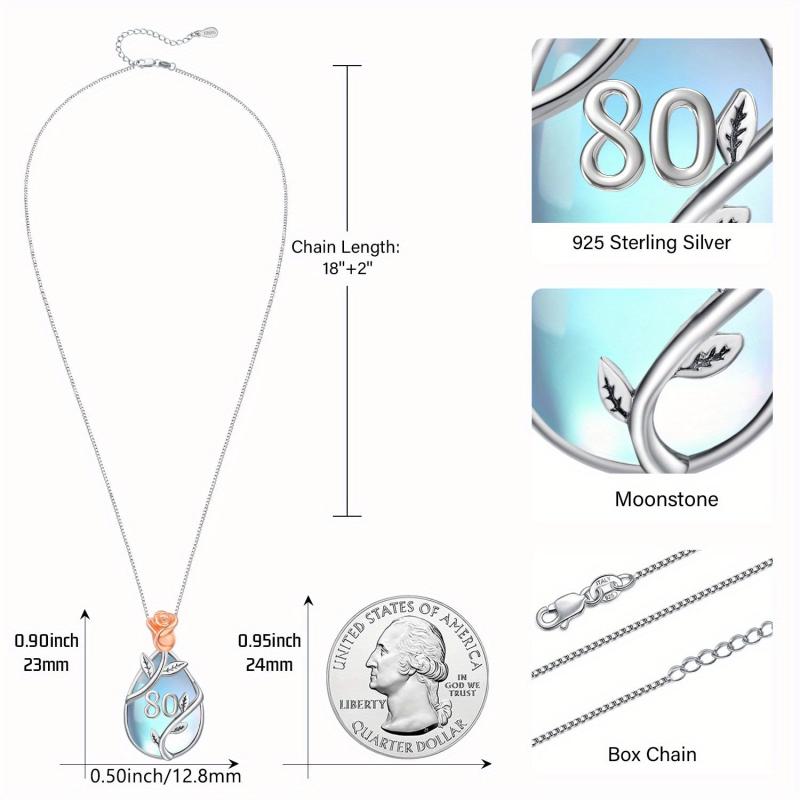 Celebrate your loved one's 80th birthday with this exquisite 925 Sterling Silver Moonstone Rose pendant necklace. Perfect gift for mom, grandmother, wife, and mothers on Christmas or anniversaries.