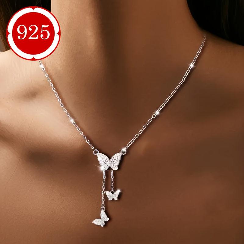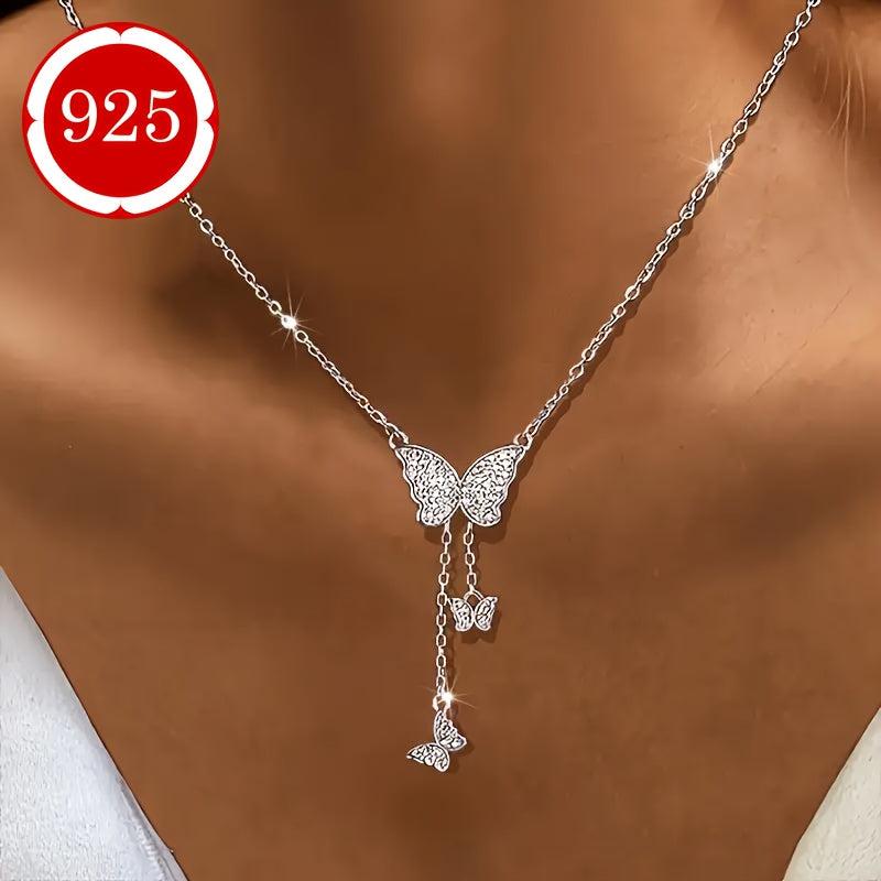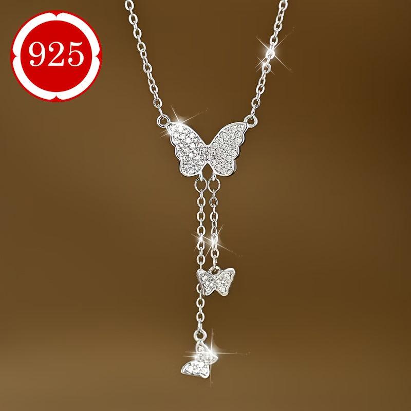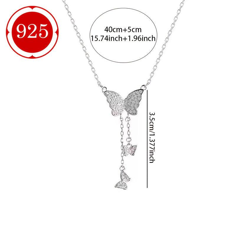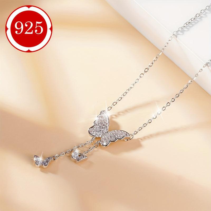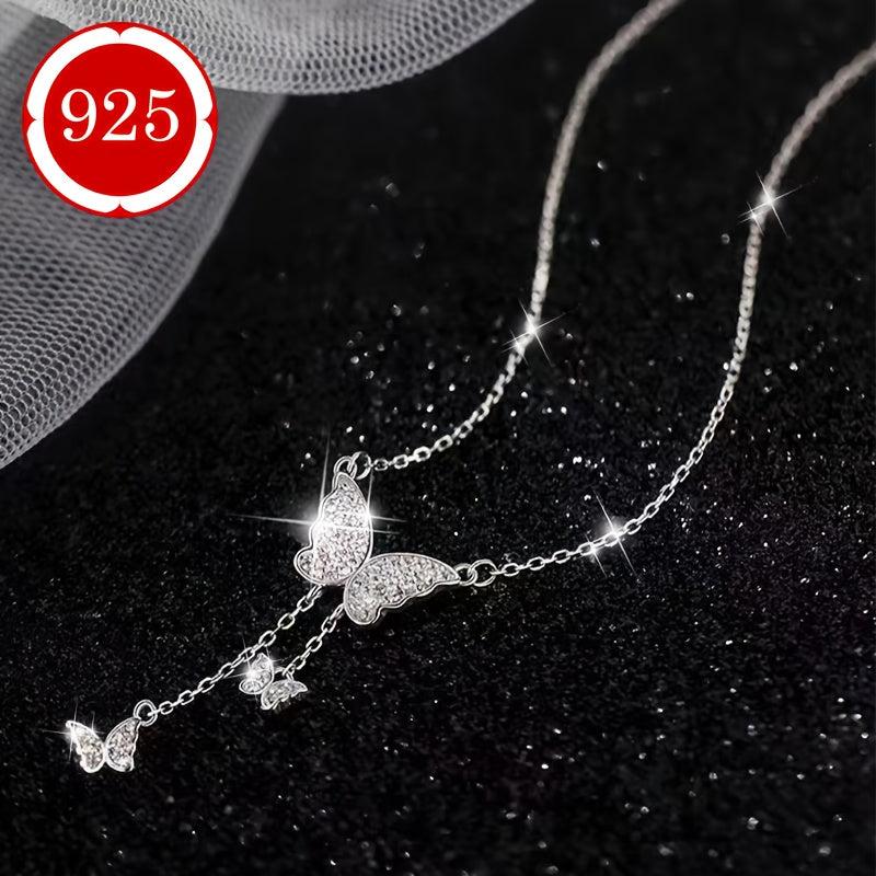 925 Silver Butterfly Pendant Necklace with Sparkling Stones