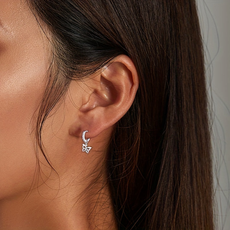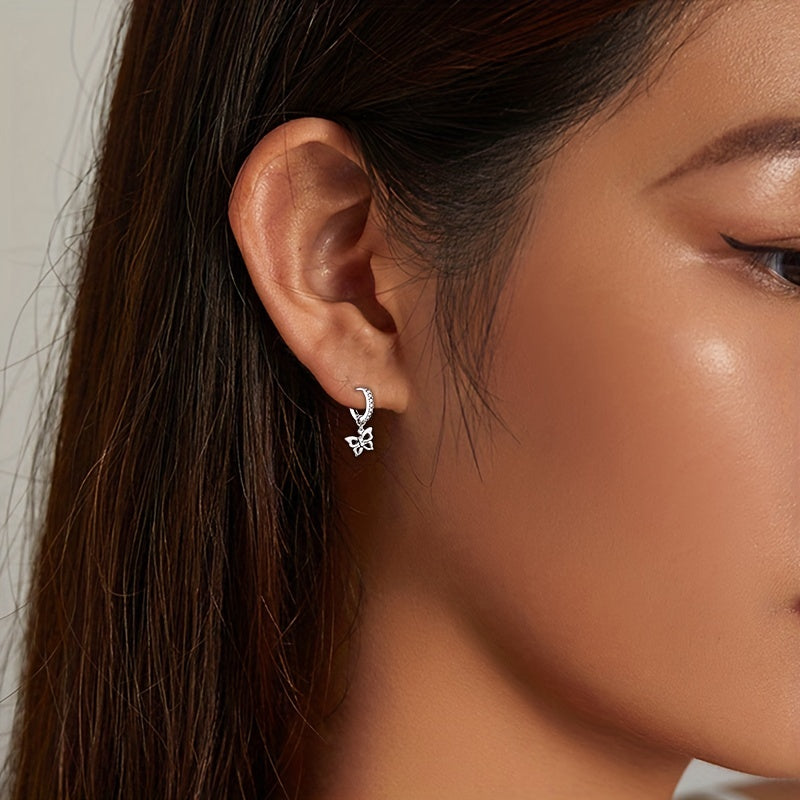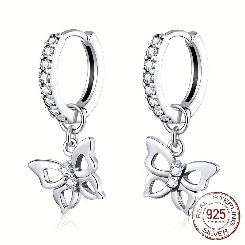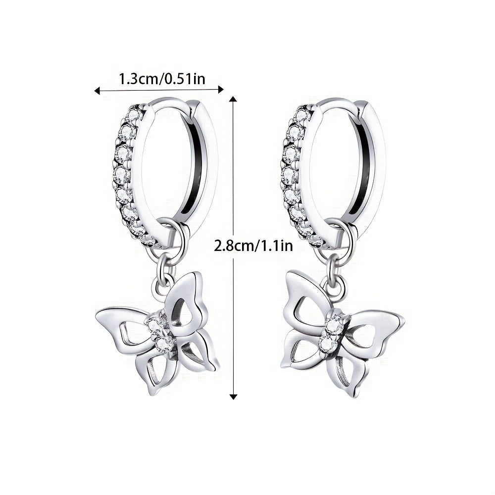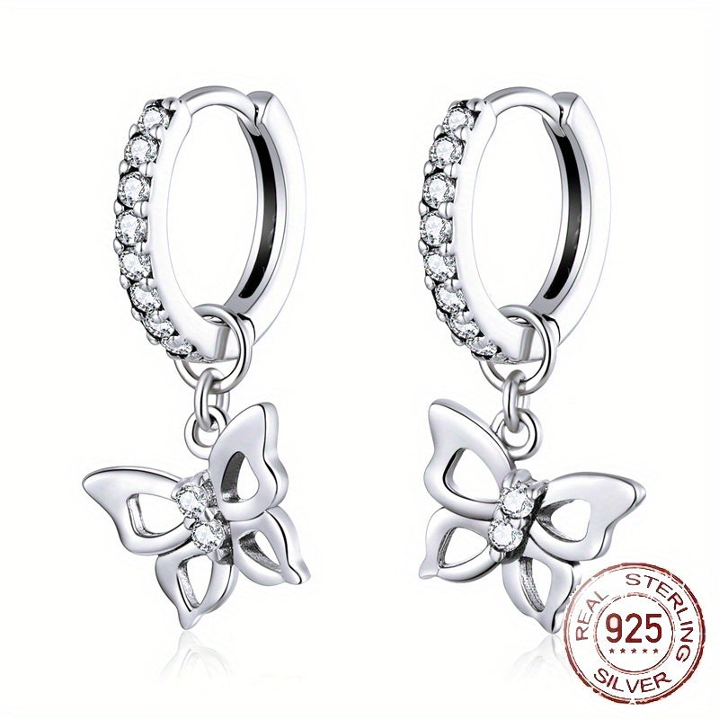 These stunning 925 silver earrings feature a butterfly design with zircon inlays. Perfect for women and girls, these 3D earrings add a touch of elegance to any outfit.