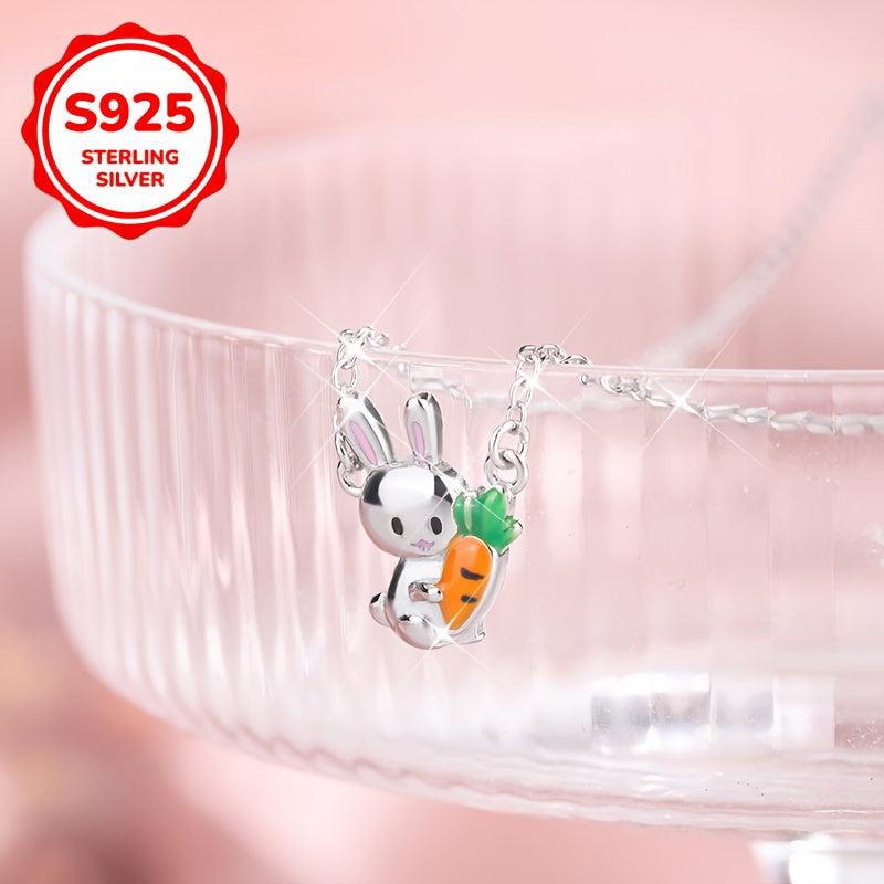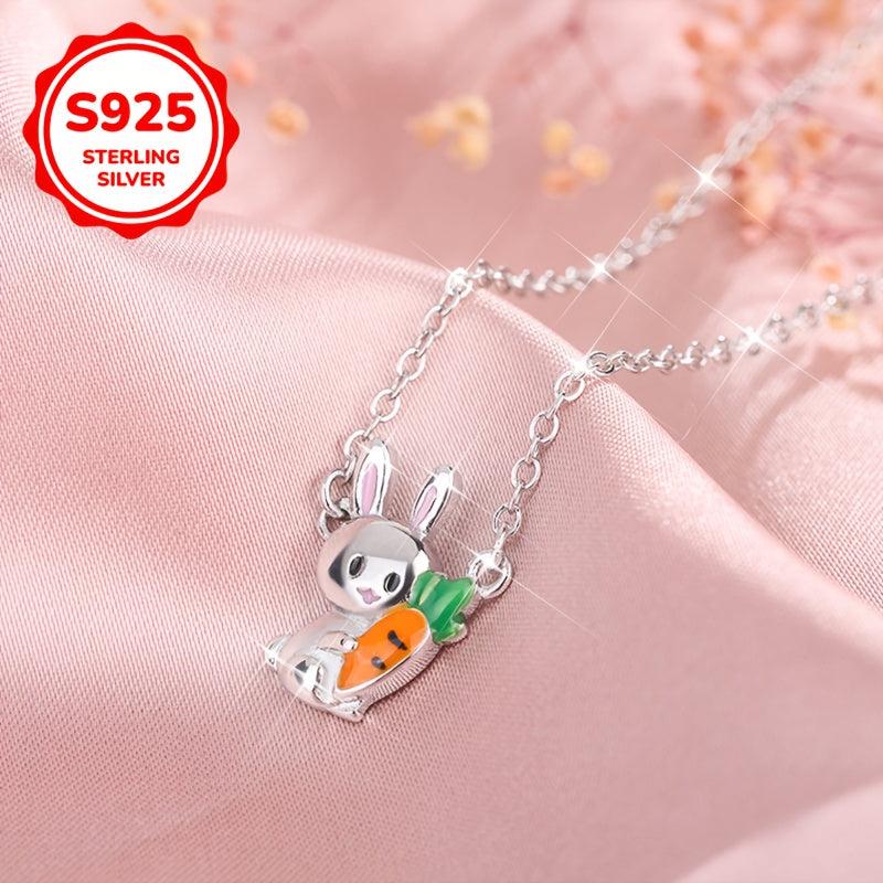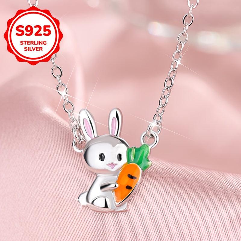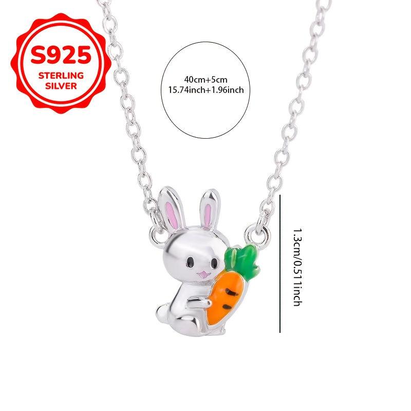 925 Silver Carrot Bunny Pendant Necklace for Couples