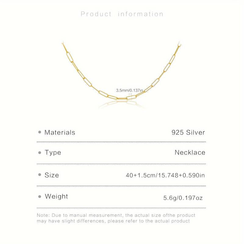 925 Silver Chain Necklace 5 6g Minimalist Jewelry 18K Golden Plated No Gemstone