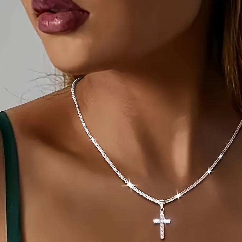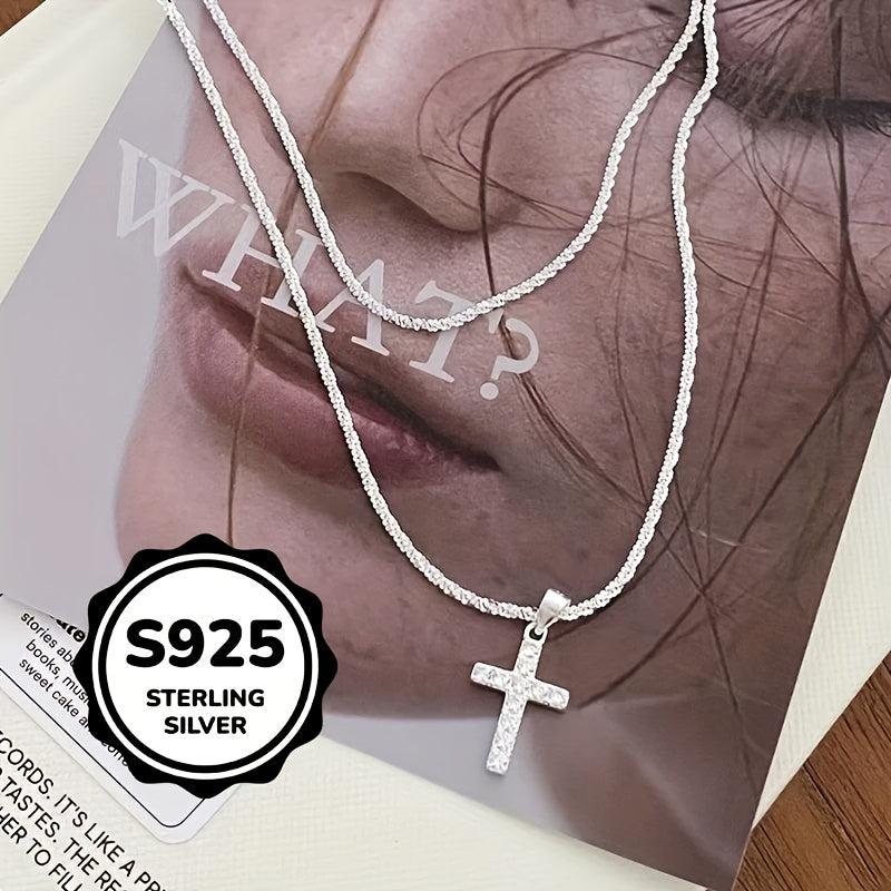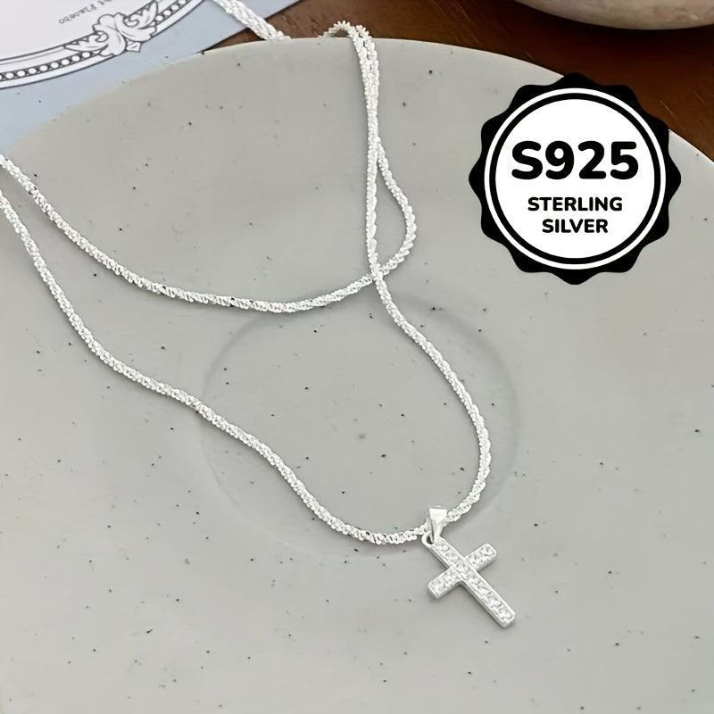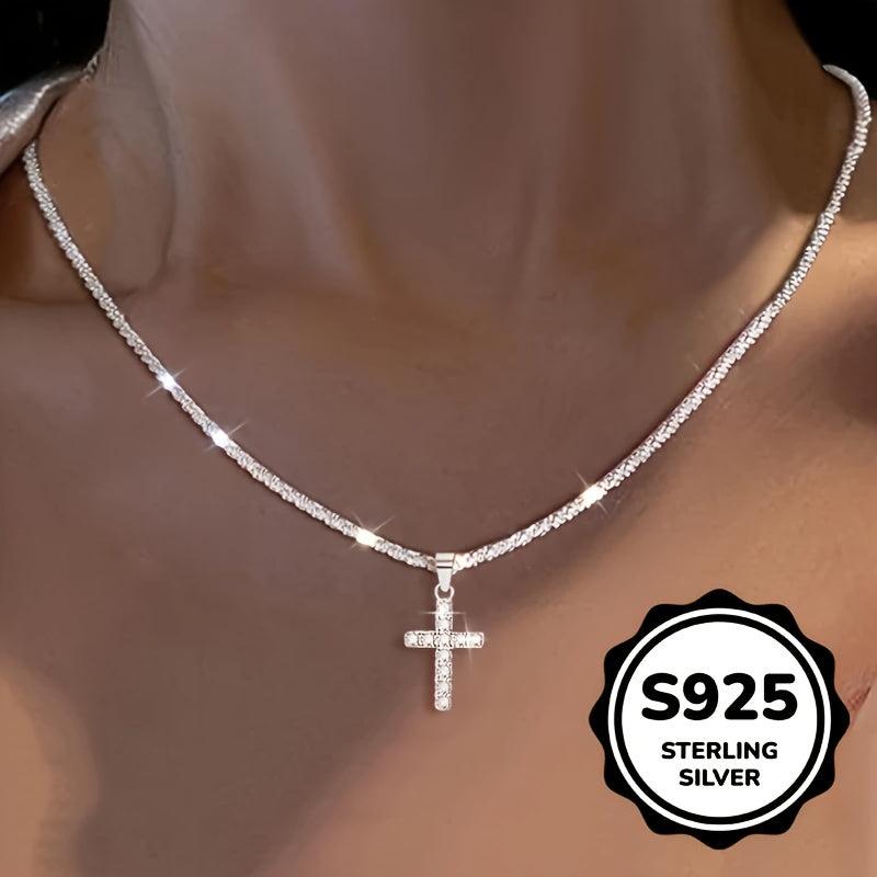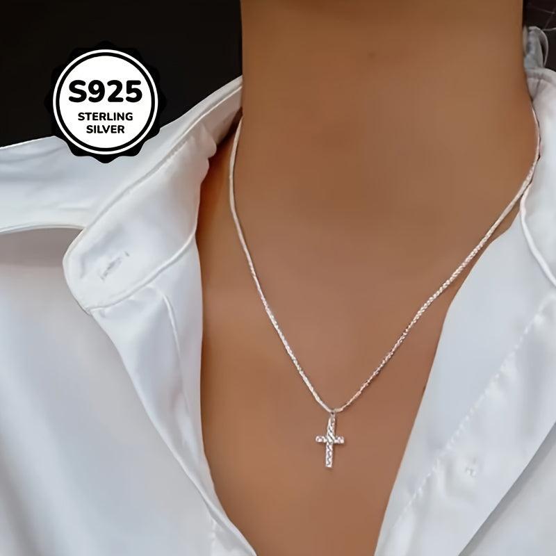 This 925 sterling silver necklace features a cross pendant, perfect for everyday wear or special occasions. Hypoallergenic and stylish.