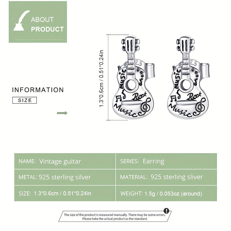 Add a touch of music-inspired charm to your look with these stunning guitar stud earrings. Made from 925 sterling silver and adorned with zircon, these earrings are perfect for a bohemian party style.