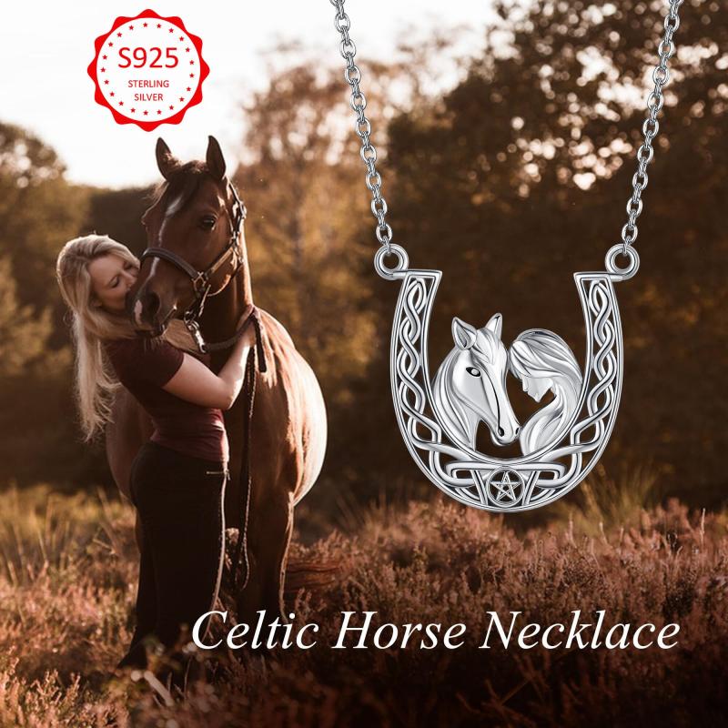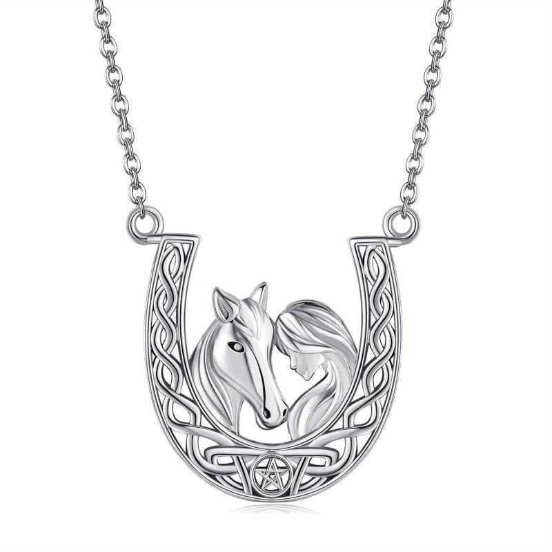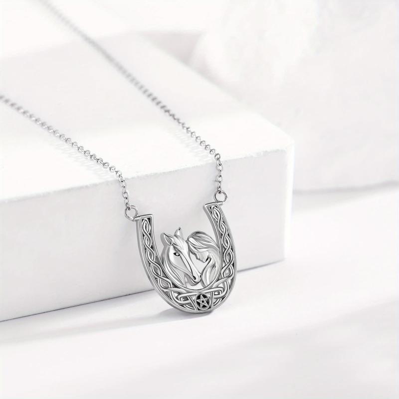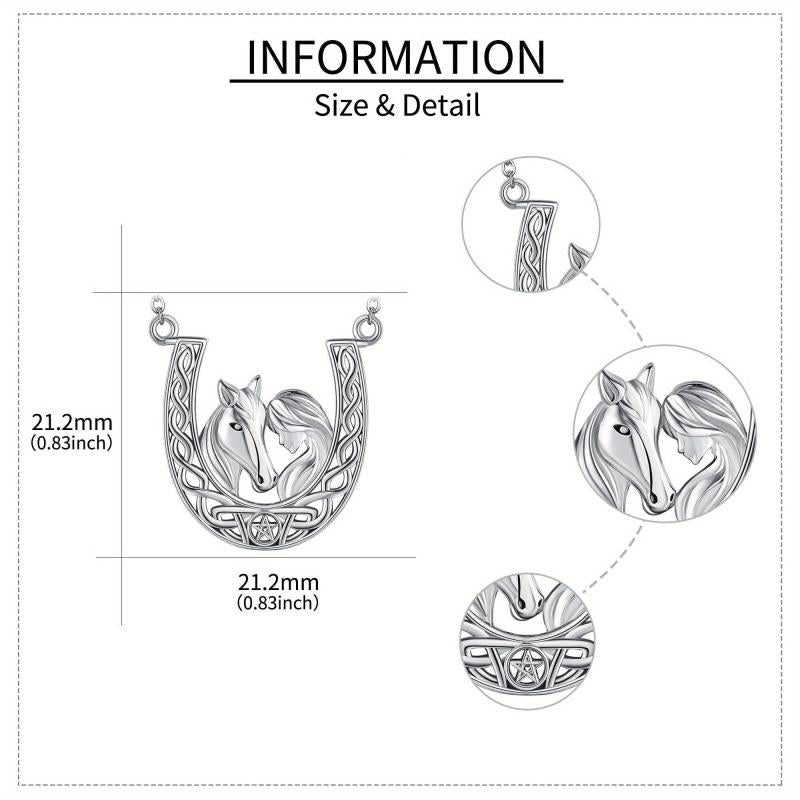 This stunning necklace features a 925 sterling silver horseshoe pendant with a Celtic knot horse design. It is a perfect accessory for horse lovers and makes a great gift for women.