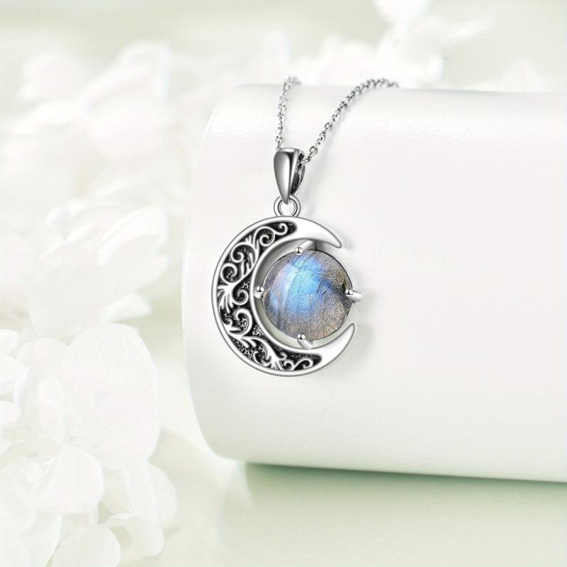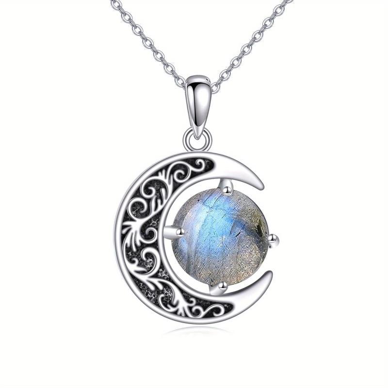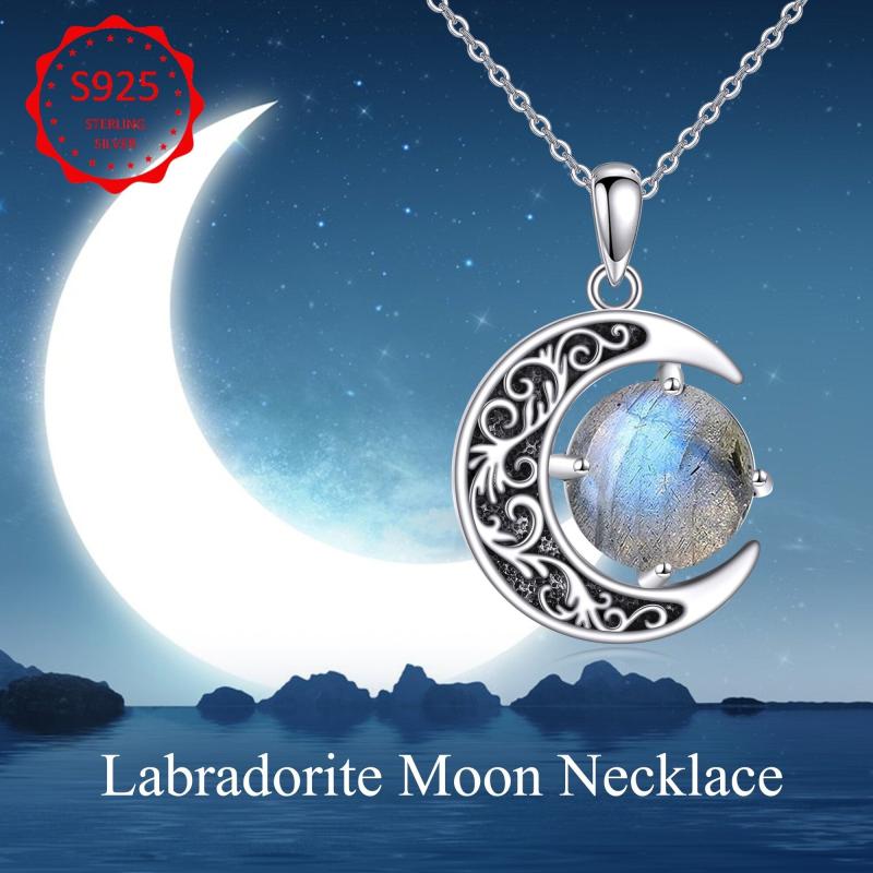 925 Silver Labradorite Moon Necklace for Women
