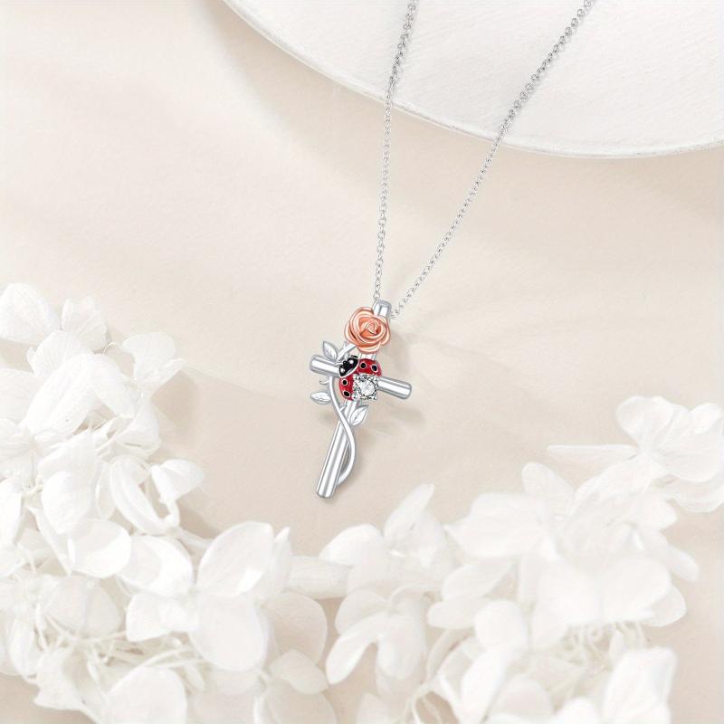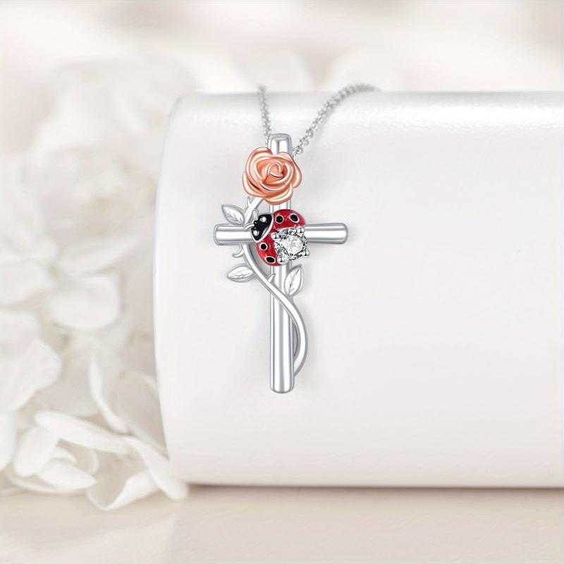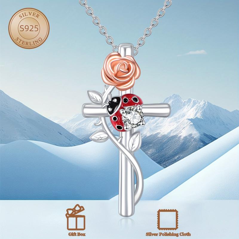 This stunning 925 sterling silver cross necklace features a lovely ladybug pendant. The perfect gift for women who appreciate unique and elegant jewelry.