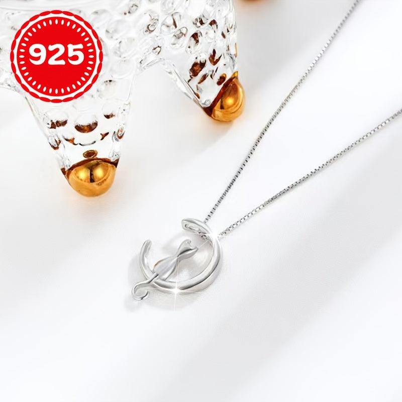 925 Silver Moon Cat Pendant Necklace Hypoallergenic Women&