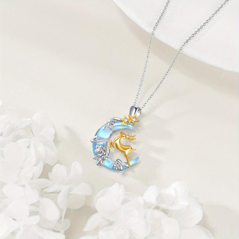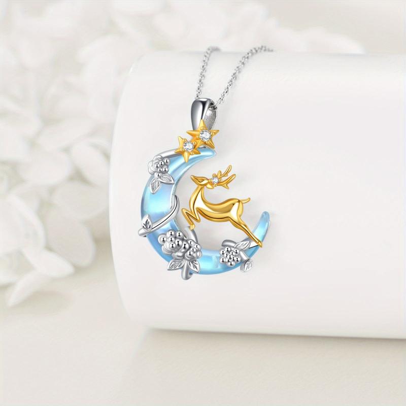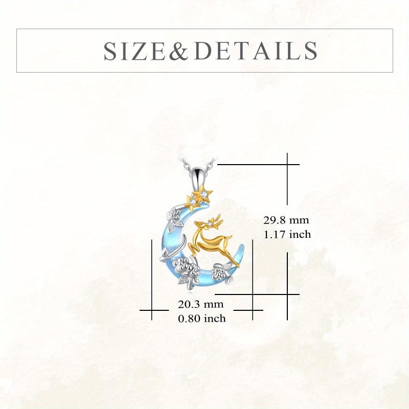 This stunning deer necklace features a crescent moon design with a synthetic moonstone, making it perfect for Christmas or everyday wear. Crafted from 925 sterling silver, this elegant necklace is a beautiful addition to any jewelry collection.