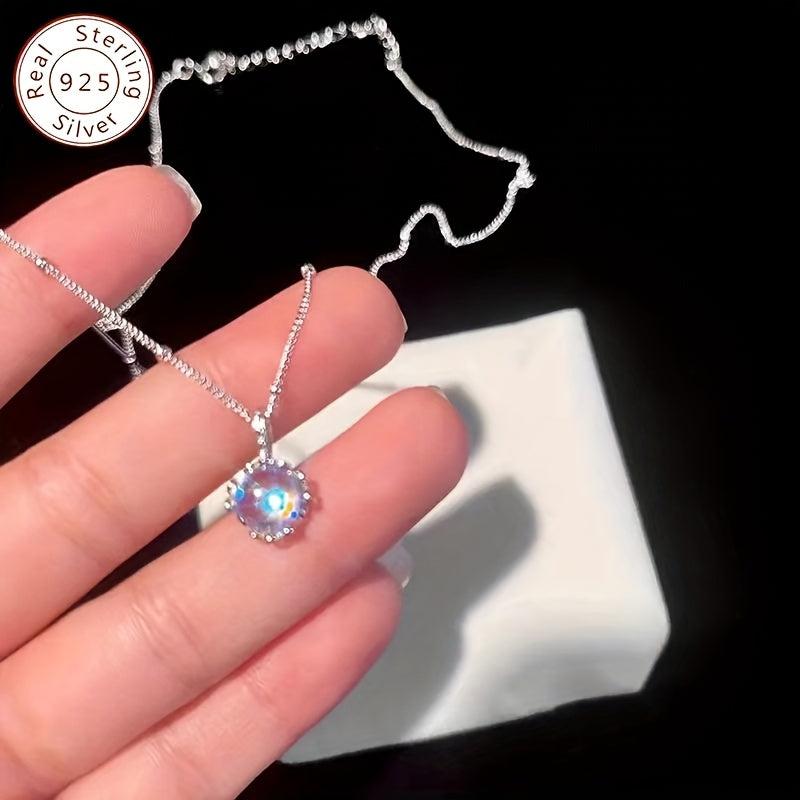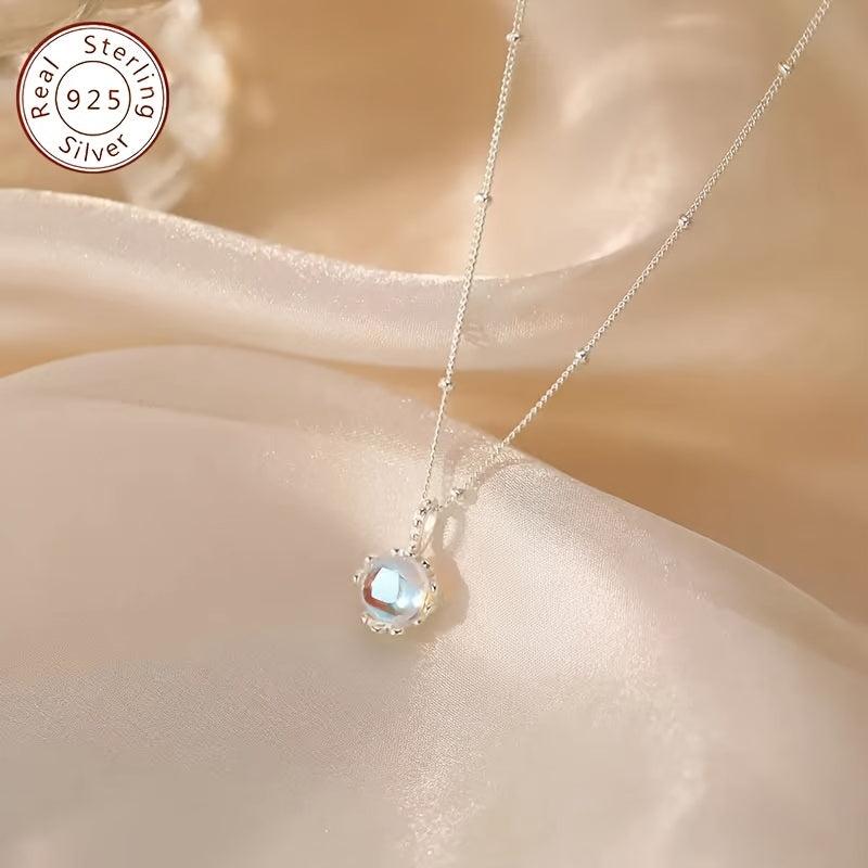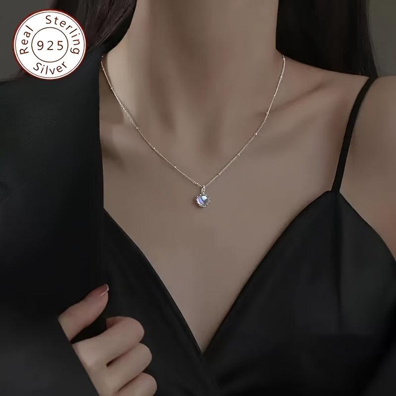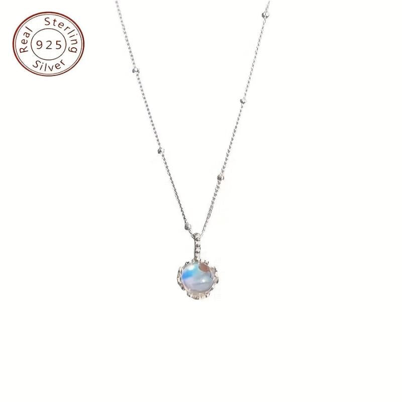 This necklace features a beautiful moonstone flower pendant on a 925 silver collarbone chain, adding elegance to any outfit.