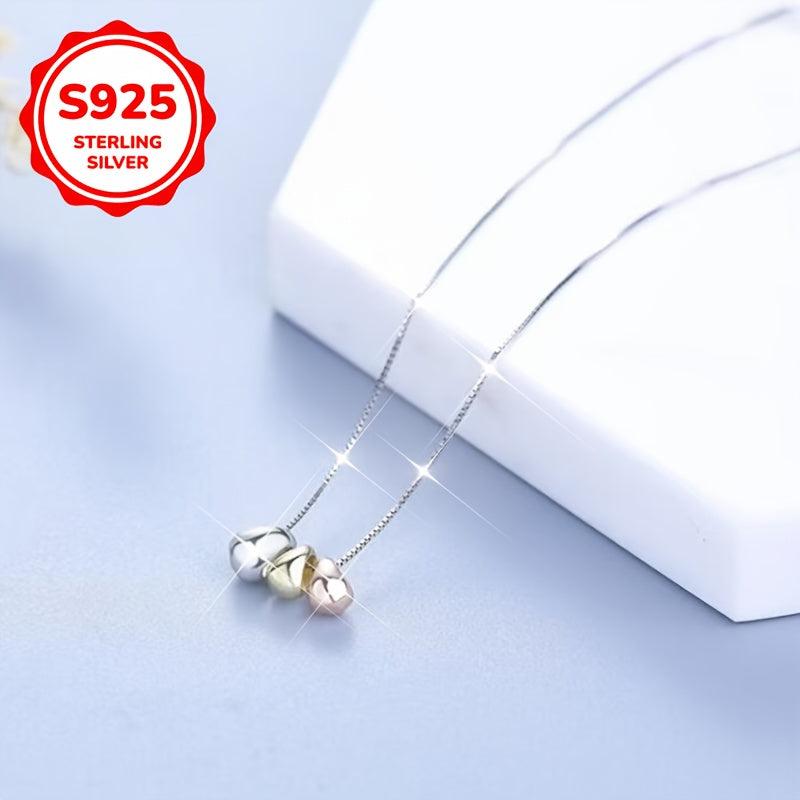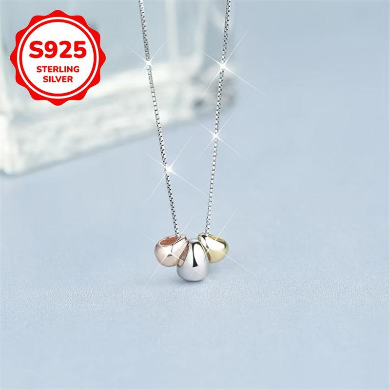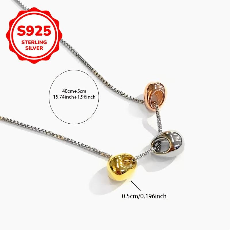 925 Silver Necklace Three Golden Bean Pendant Oval Chain for Women