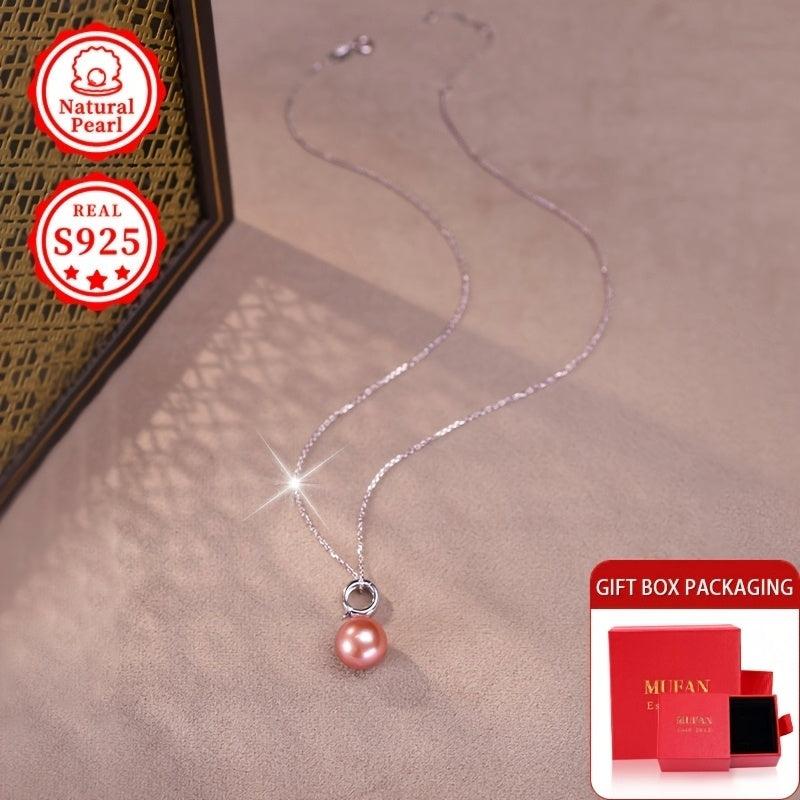 925 Silver Pearl Necklace with 10-11mm Natural Freshwater Pearls in Soft Purple