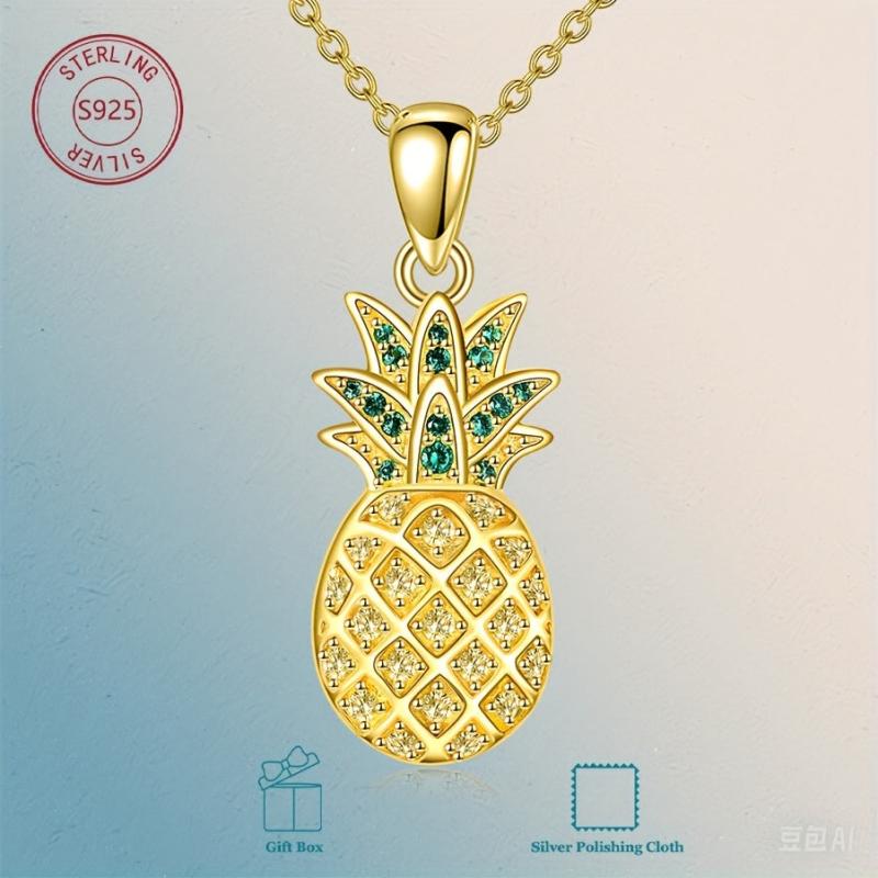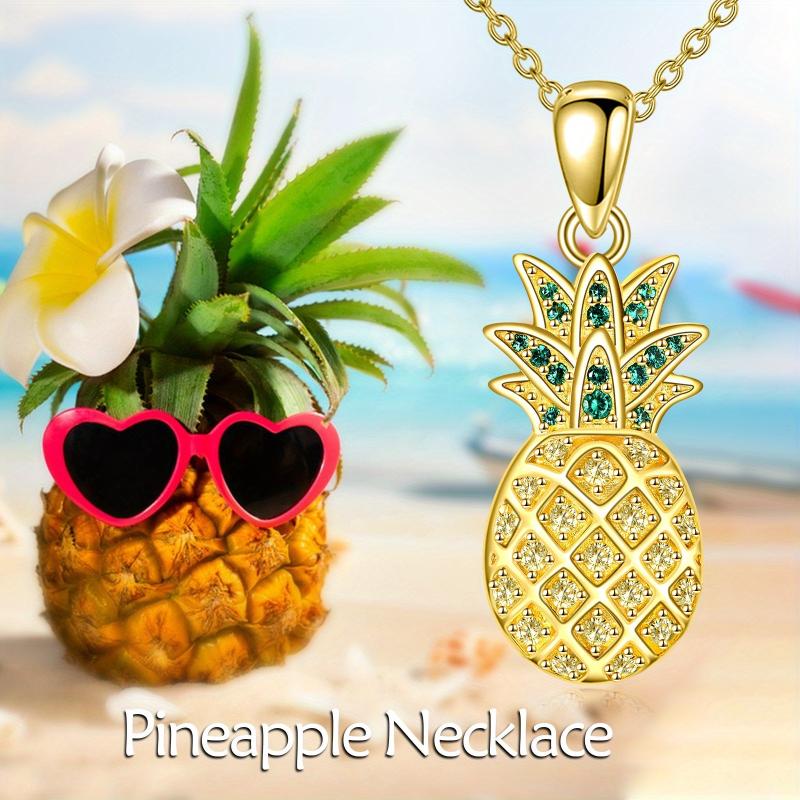 Adorn yourself with this exquisite pineapple necklace made from 925 sterling silver and adorned with synthetic cubic zirconia. Perfect gift for women and moms.