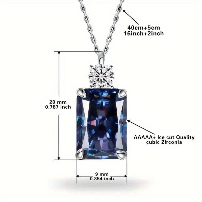 Add a touch of elegance to your look with this stunning pendant necklace featuring a rectangular tanzanite gemstone and D VVS1 round cut moissanite stone. Perfect for daily wear or special occasions.