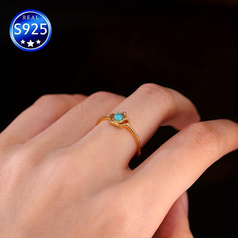 This vintage 925 silver ring features a beautiful turquoise mosaic design. It is perfect for everyday wear as well as special gift-giving occasions. Weighing 0.8g, it is lightweight and comfortable to wear.