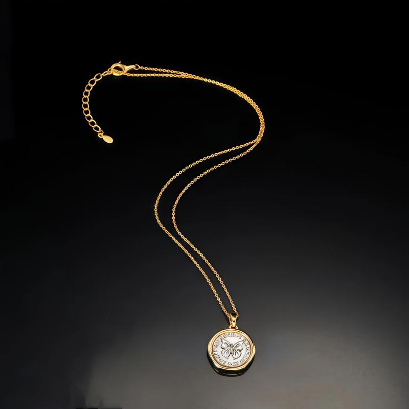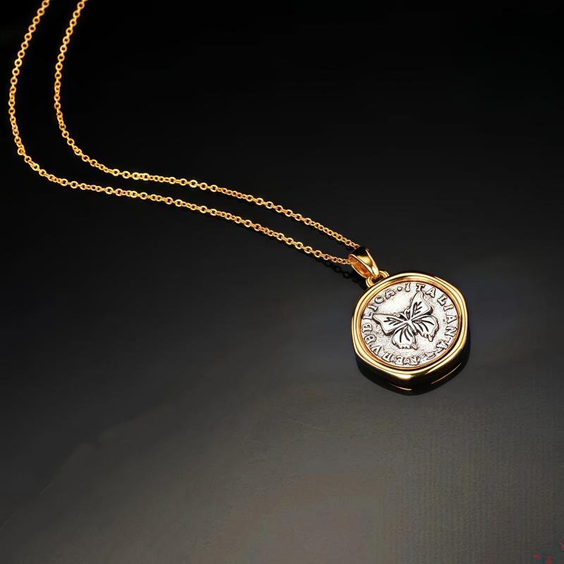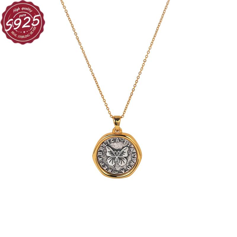 925 Silver Vintage Butterfly Coin Pendant Necklace-Christmas Gift