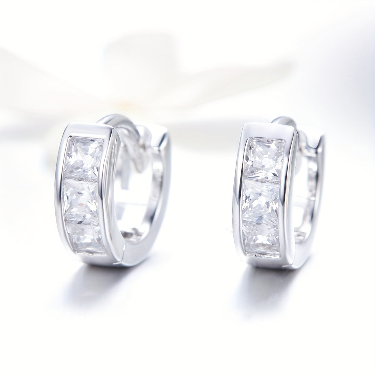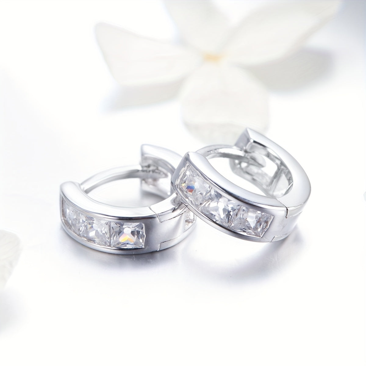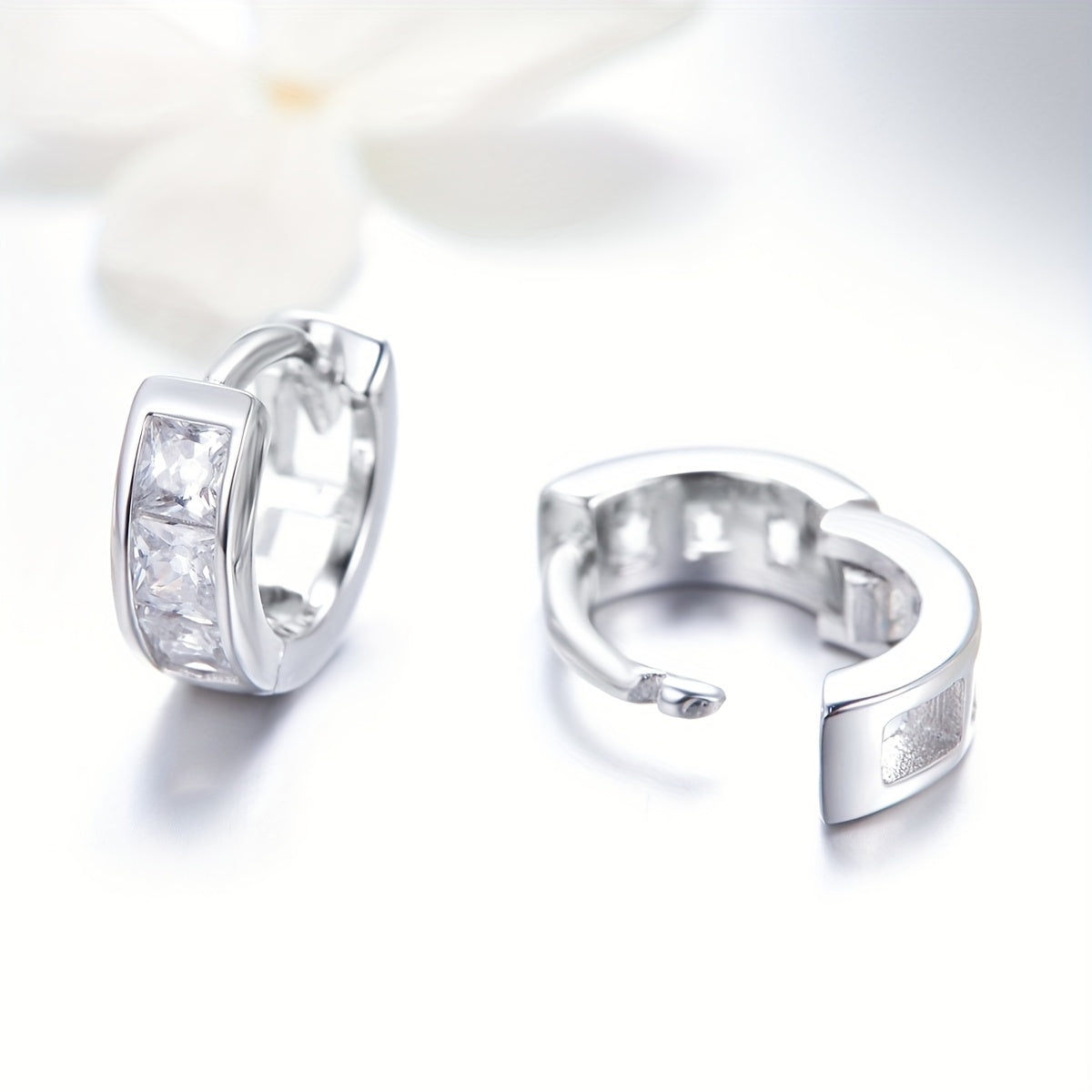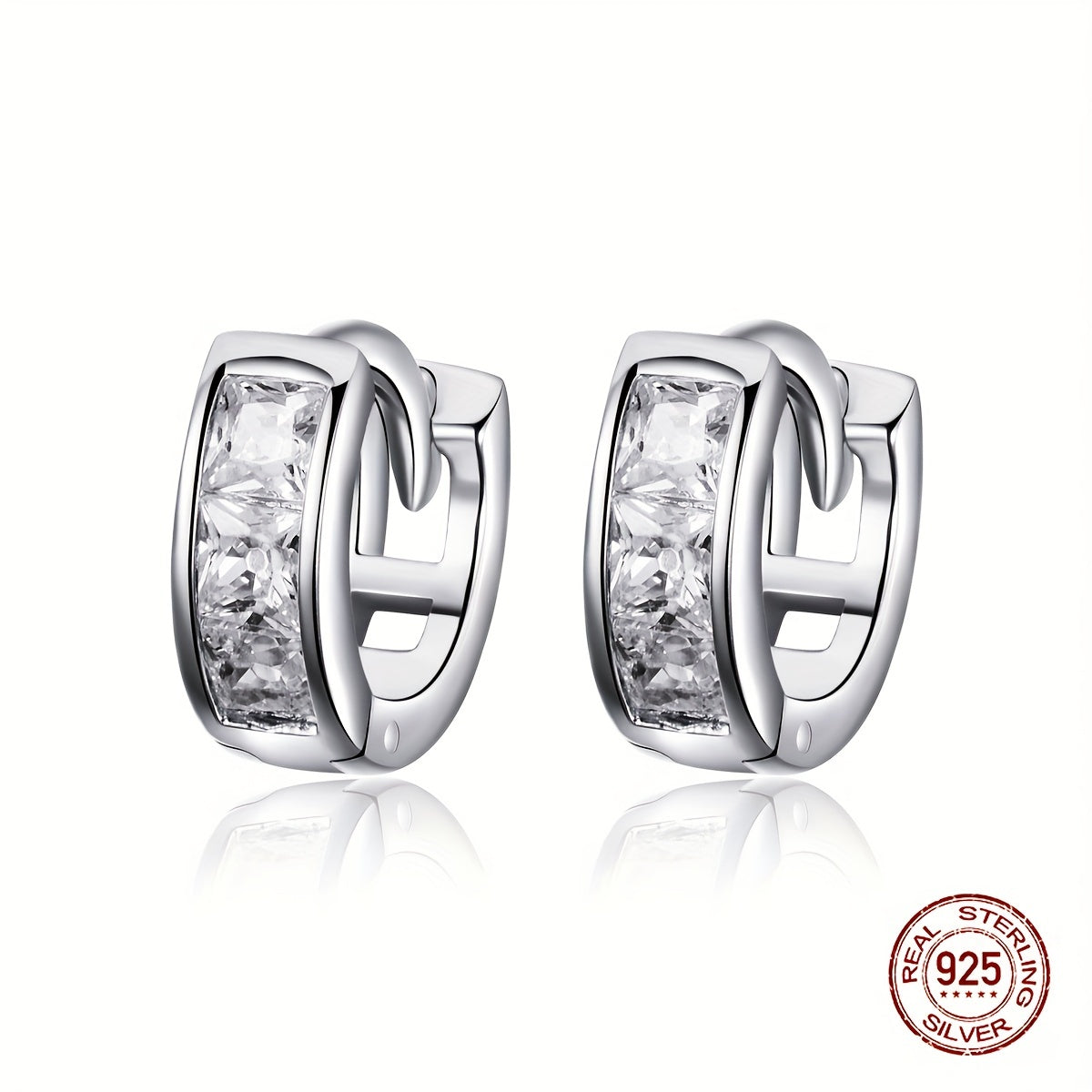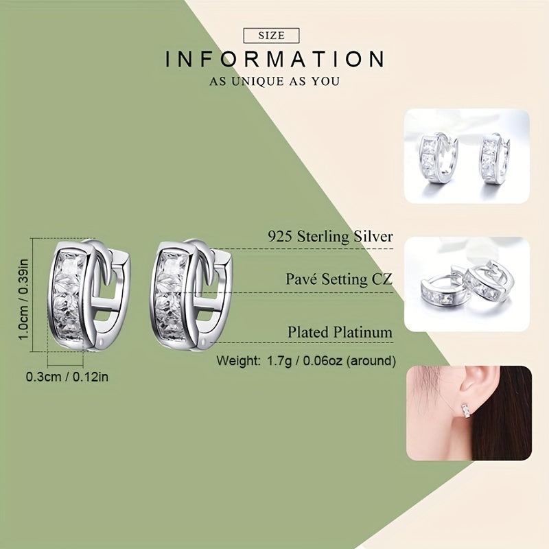 These stylish hoop earrings are made of 925 sterling silver and decorated with sparkling zircon stones. Perfect for adding a touch of elegance to any outfit or as a thoughtful gift for a loved one.