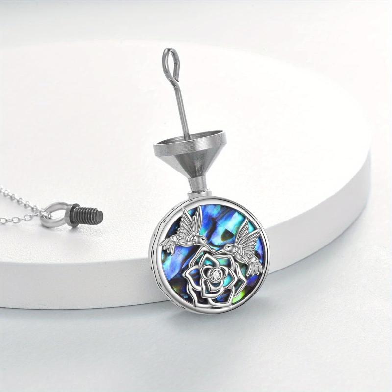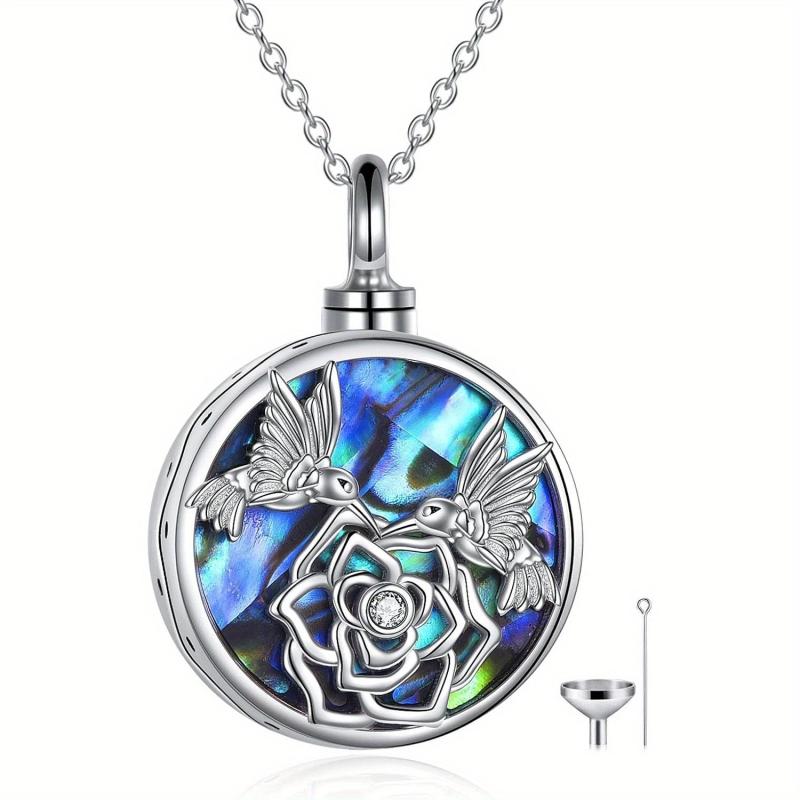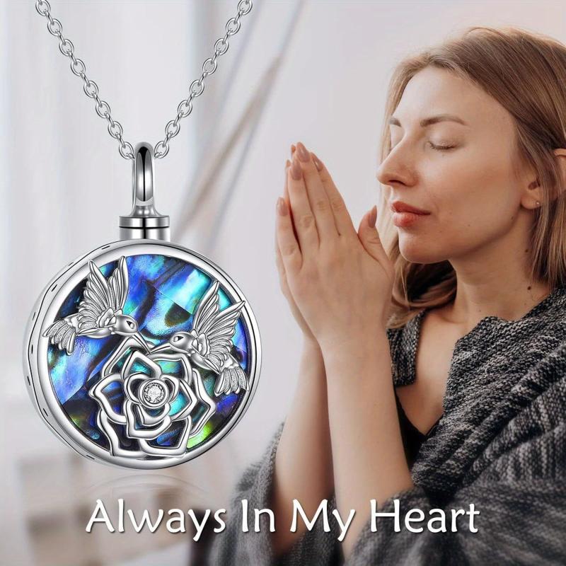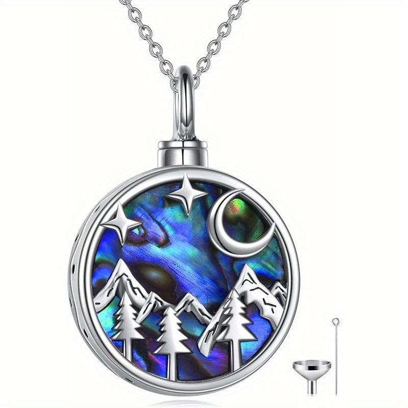 Keep your loved one close to your heart with this elegant 925 sterling silver necklace urn designed to hold ashes. The beautiful abalone shell accent adds a touch of natural beauty to this memorial piece.