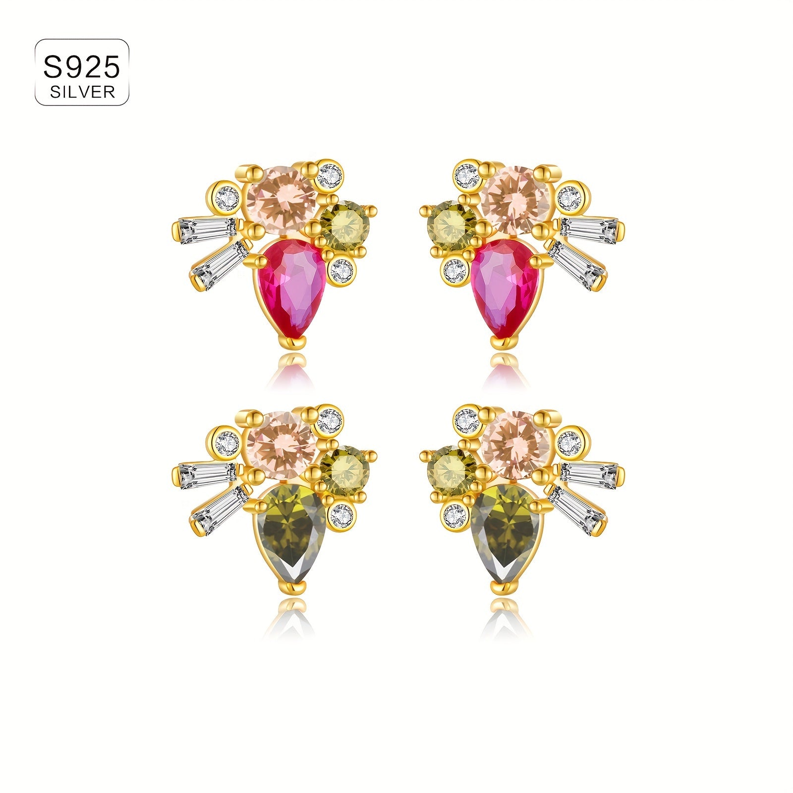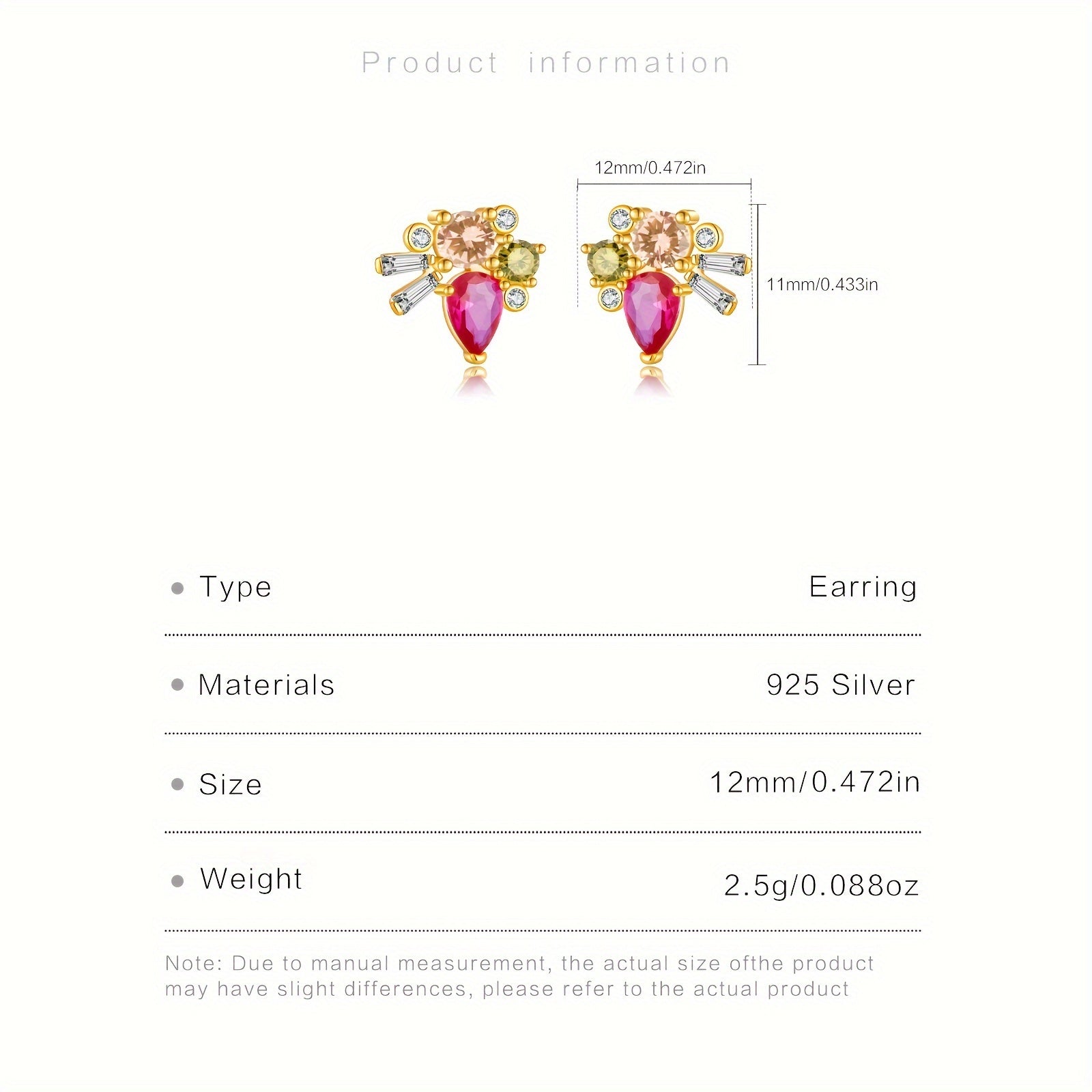 These elegant 925 sterling silver earrings feature a delicate vintage design and colourful synthetic zirconia stones. Perfect for daily wear, these high-quality jewellery pieces weigh 2.5g each.