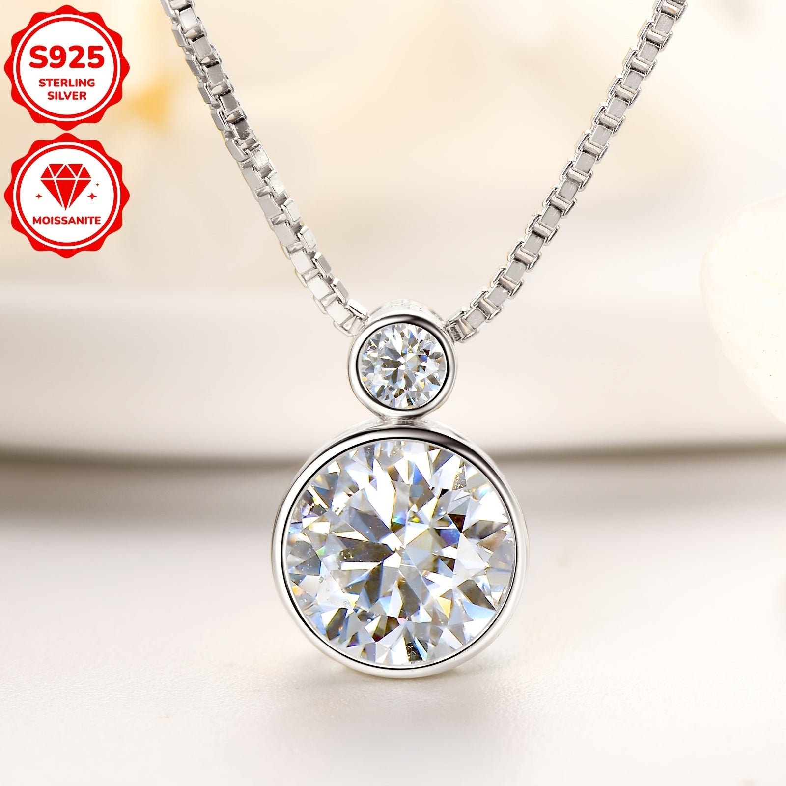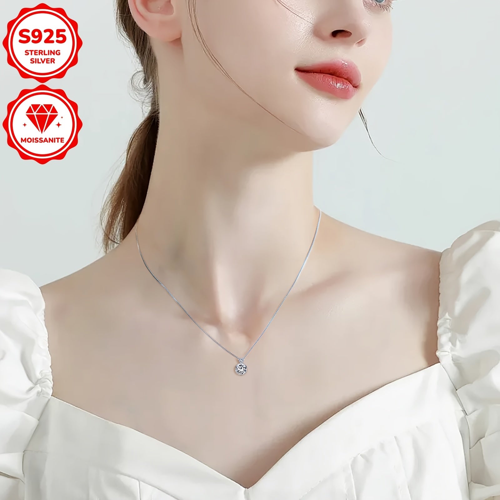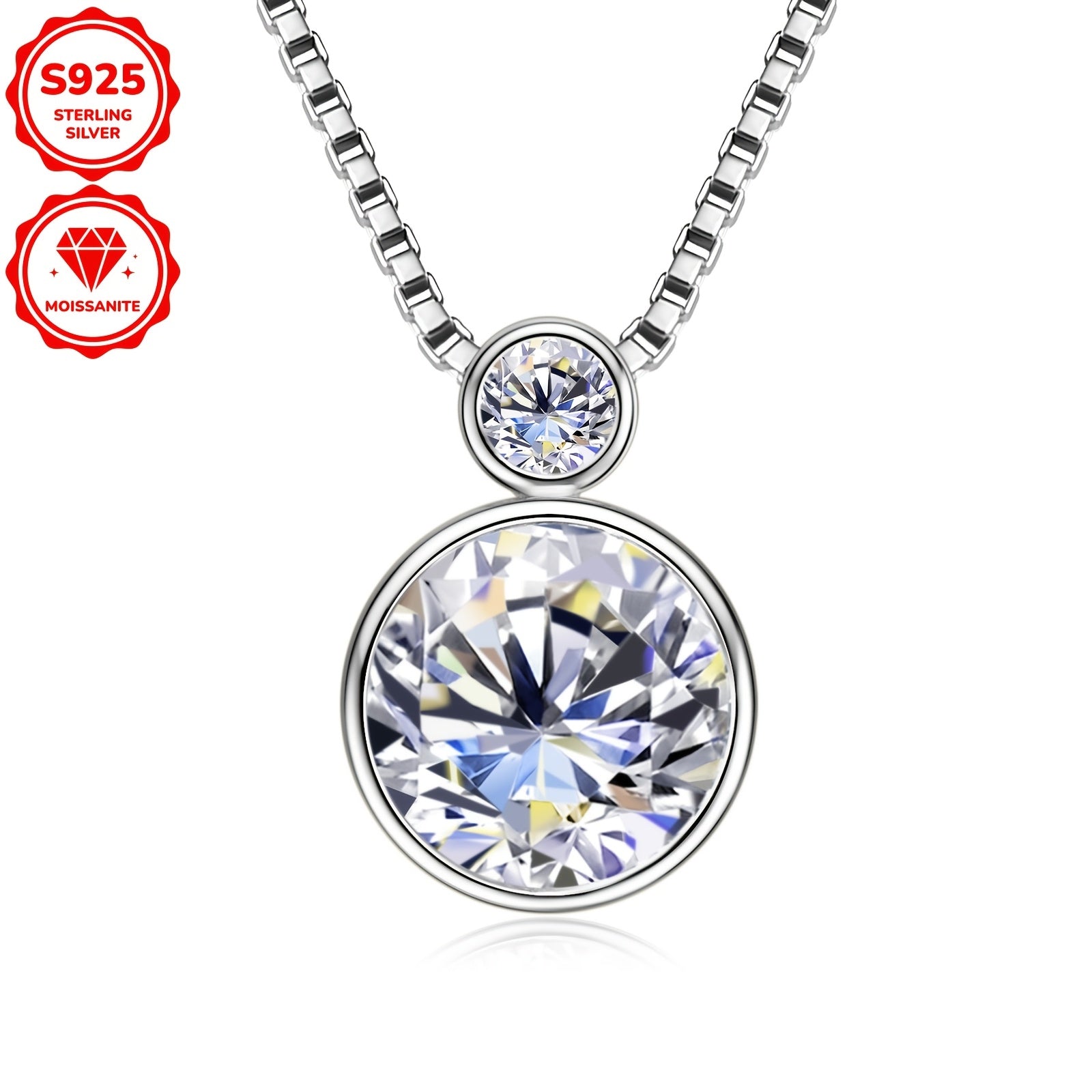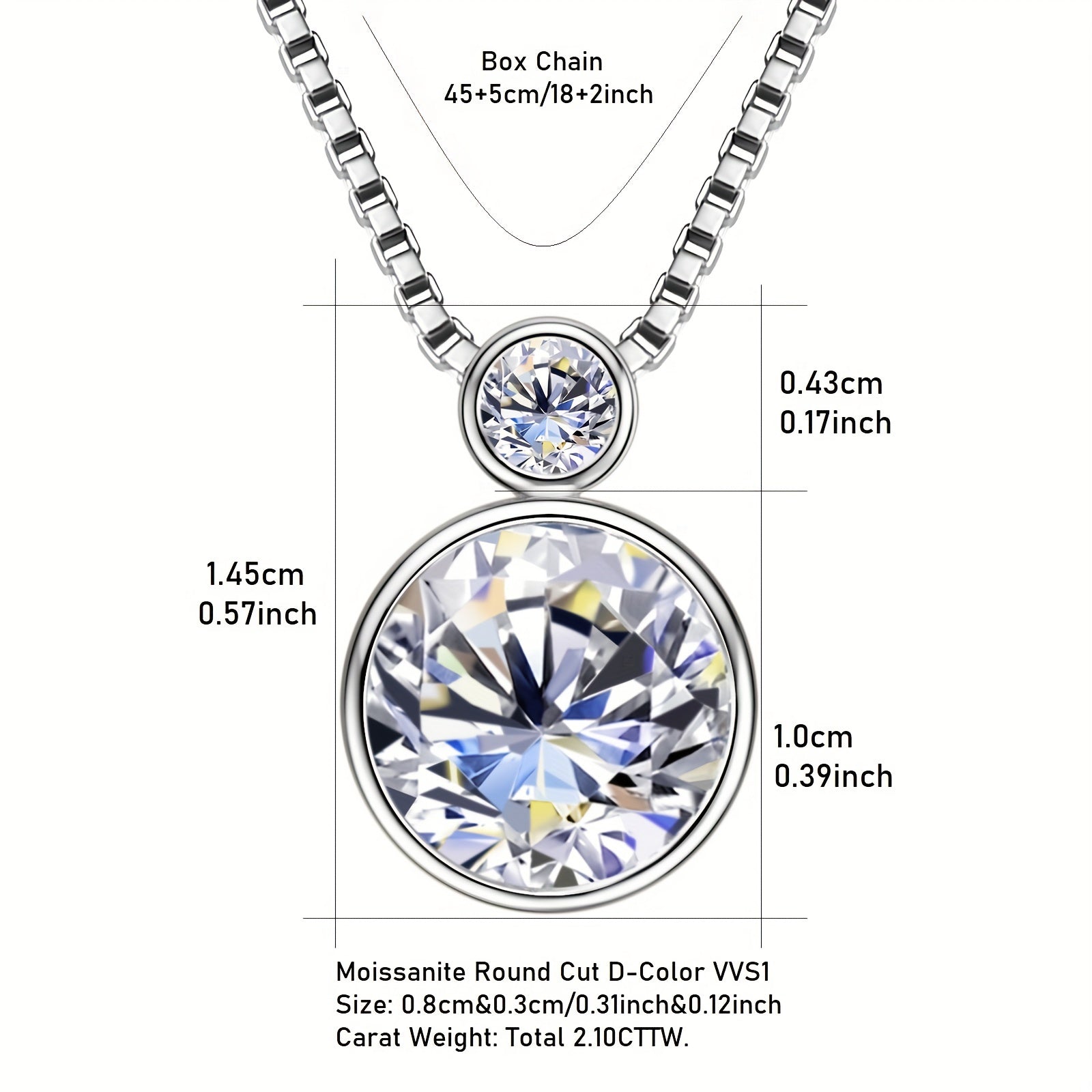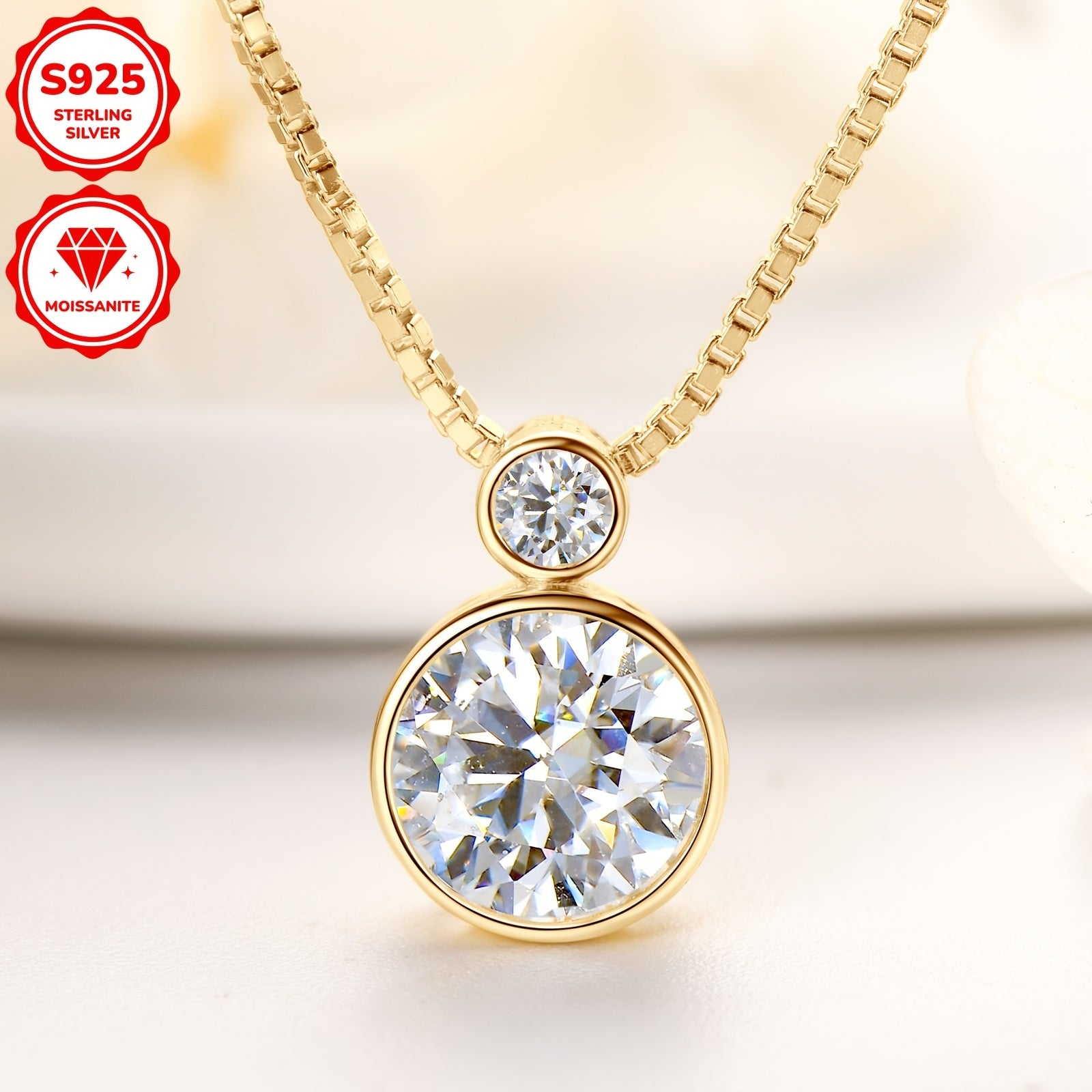 This exquisite pendant necklace features sparkling round stones set in 925 sterling silver with a 14K golden plating. Perfect for daily wear or special occasions, it comes with a 45" box chain.