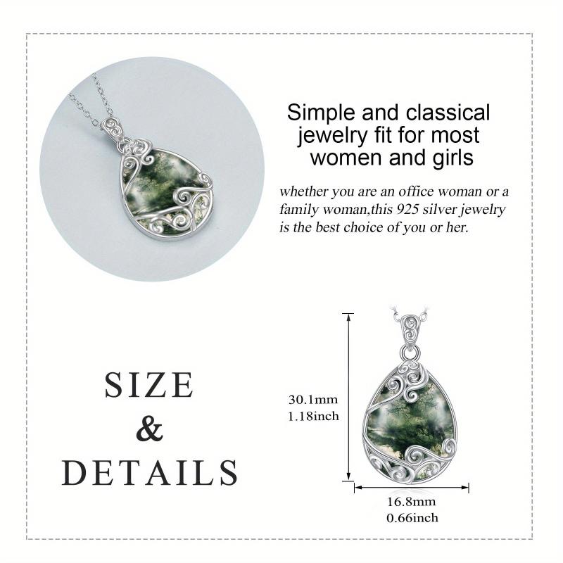 Elegant adjustable chain drop necklace featuring a beautiful seaweed agate pendant inlaid with sterling silver. This necklace weighs 5.5g and is suitable for both women and men.