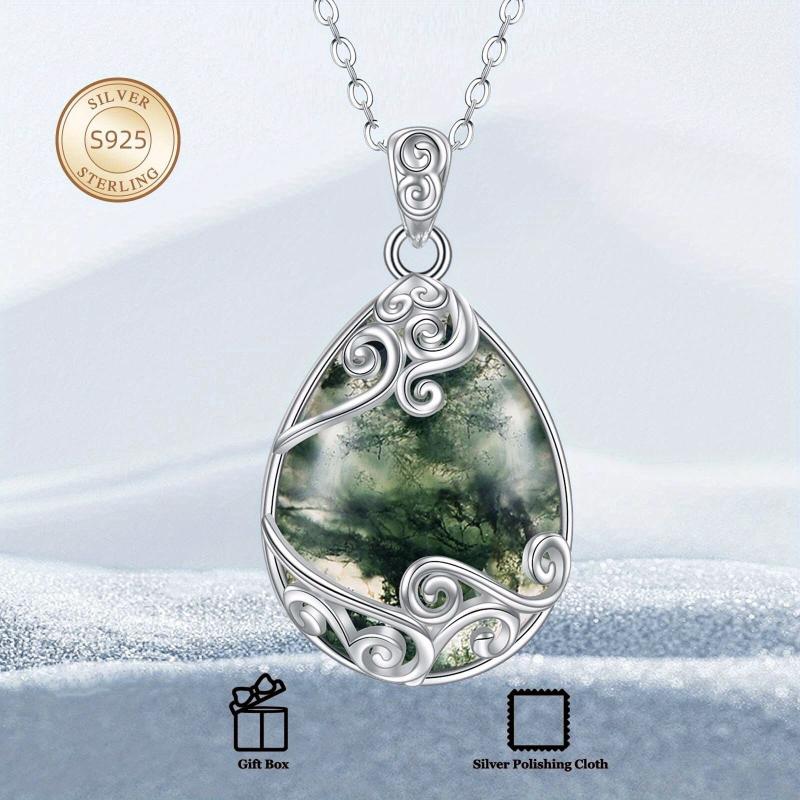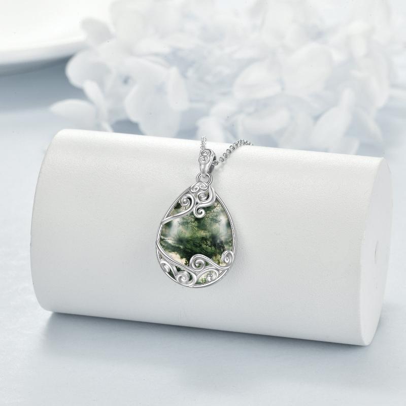 925 Sterling Silver Seaweed Agate Pendant Necklace