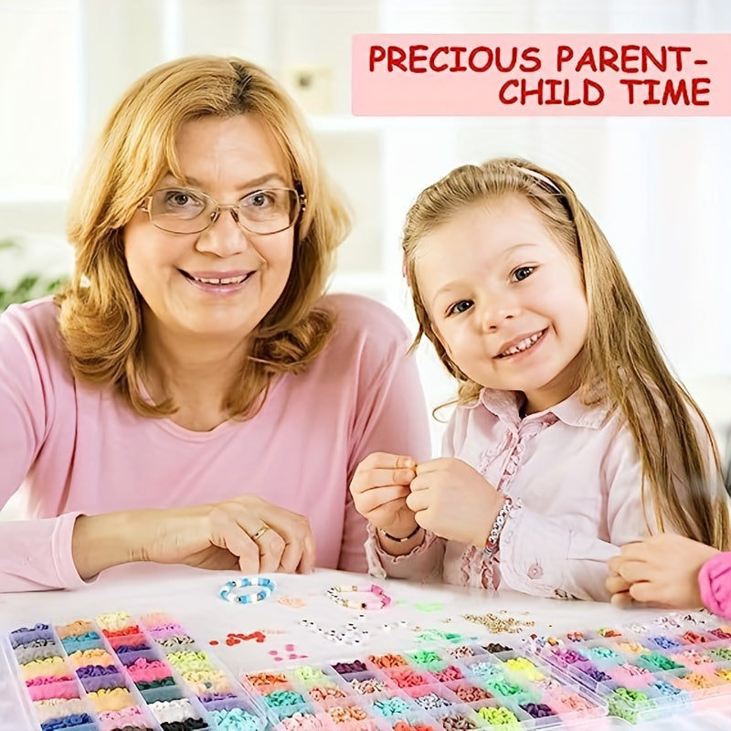 This bracelet making kit includes 9600pcs flat circular polymer clay stone spacing beads in 96 colors, perfect for creating unique bracelets, necklaces, and other jewelry items.