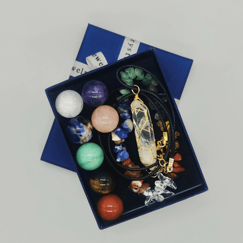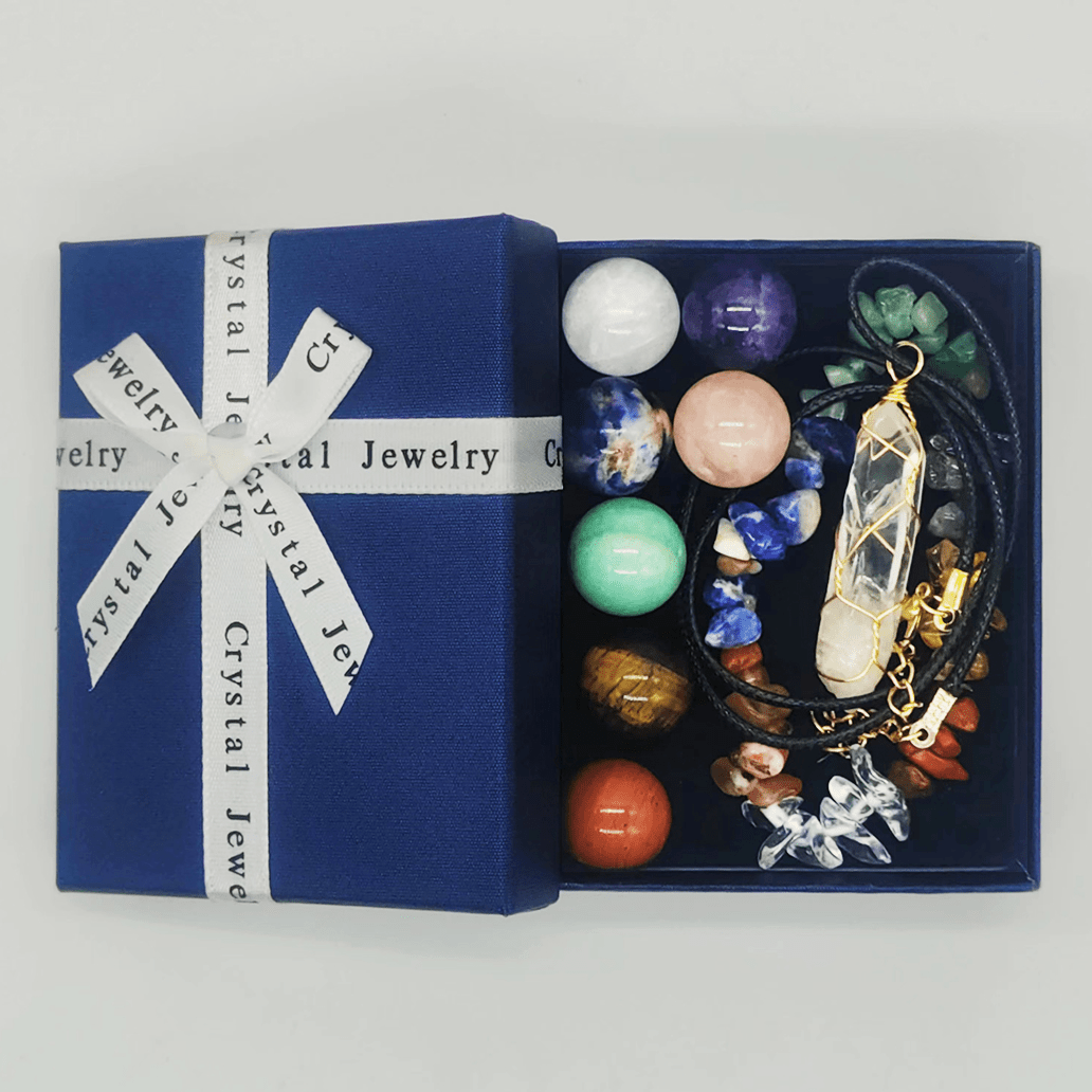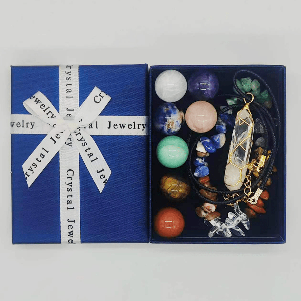 This set includes 9pcs of natural stone orbs and crystal gemstone bracelets for healing energy and mineral pendant decor. Perfect for Reiki practices and chakra alignment.