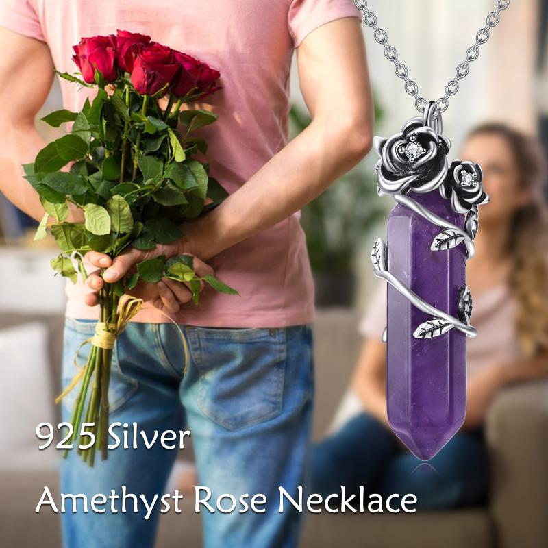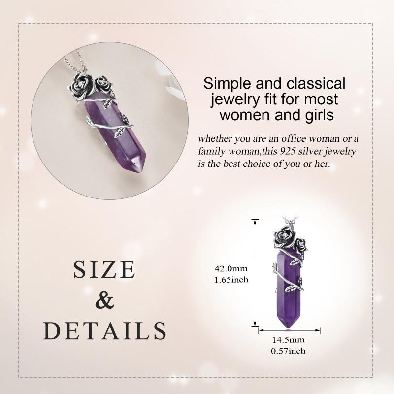 This elegant necklace features a synthetic amethyst pendant set in 925 sterling silver. The adjustable chain allows for a customized fit, making it a great gift for both women and men.